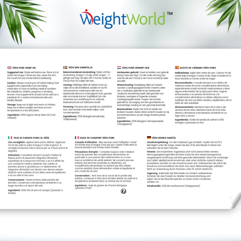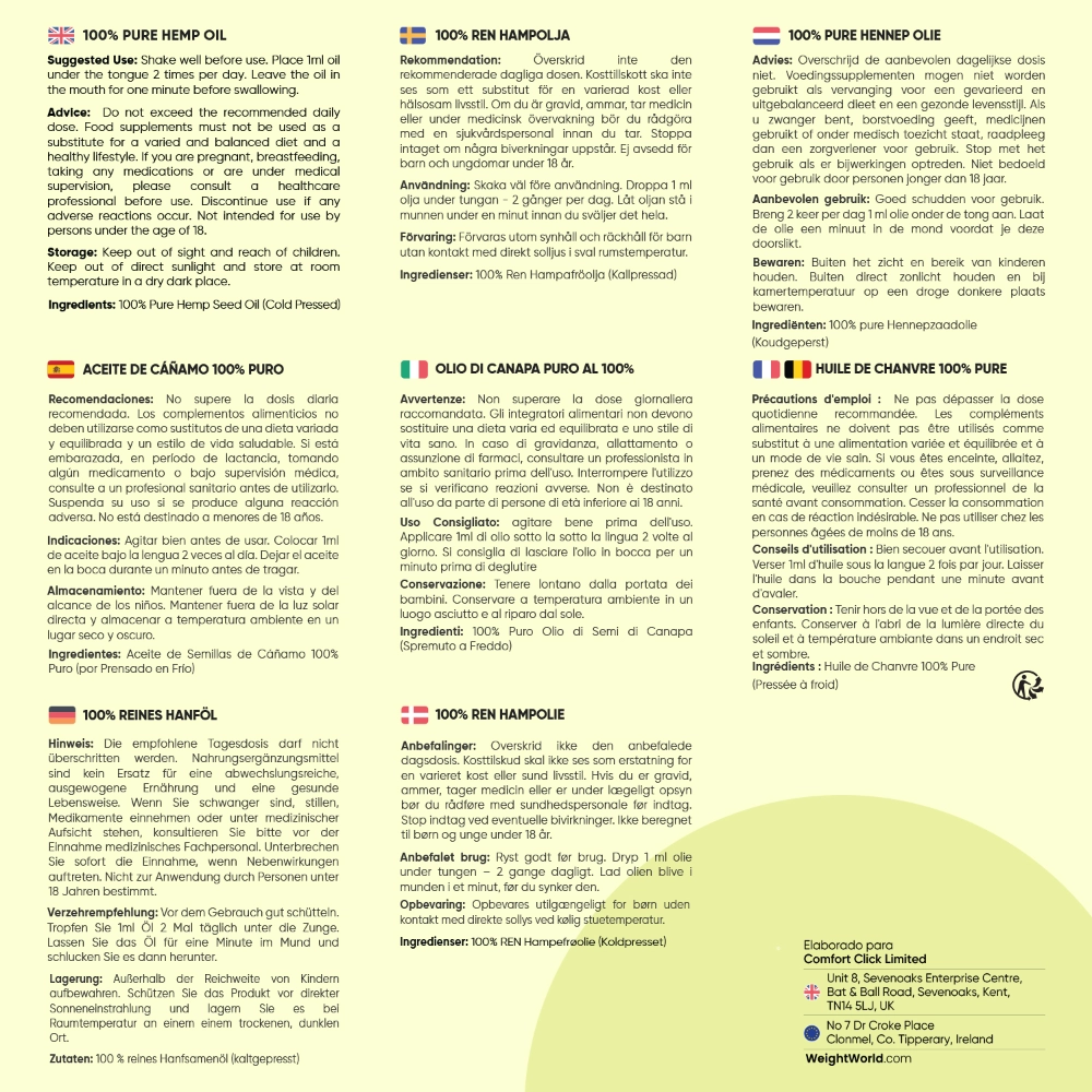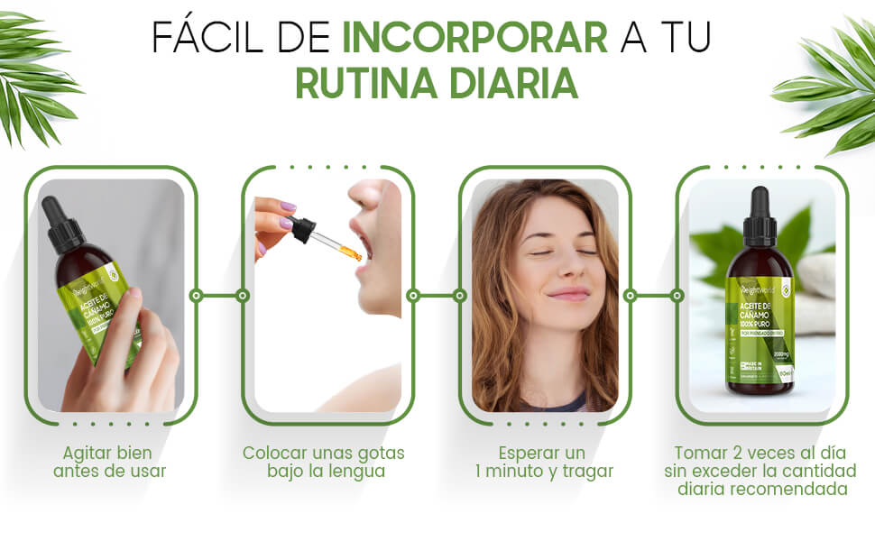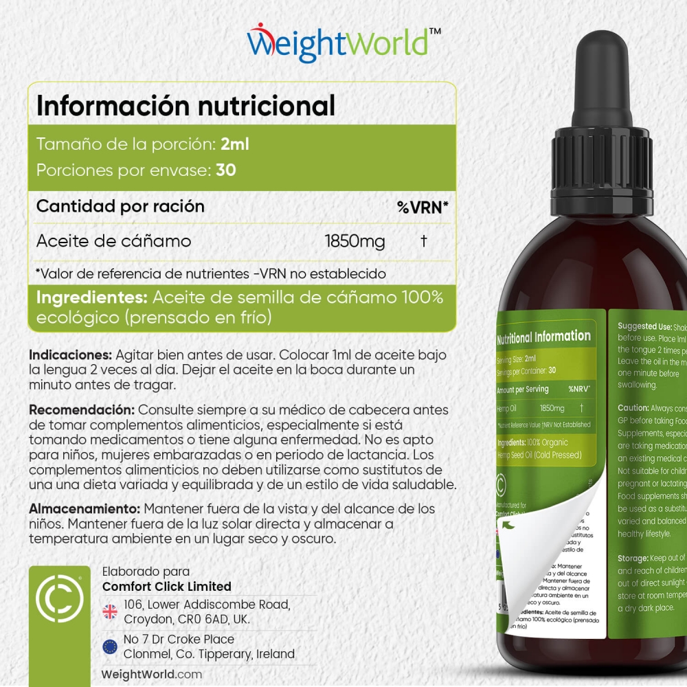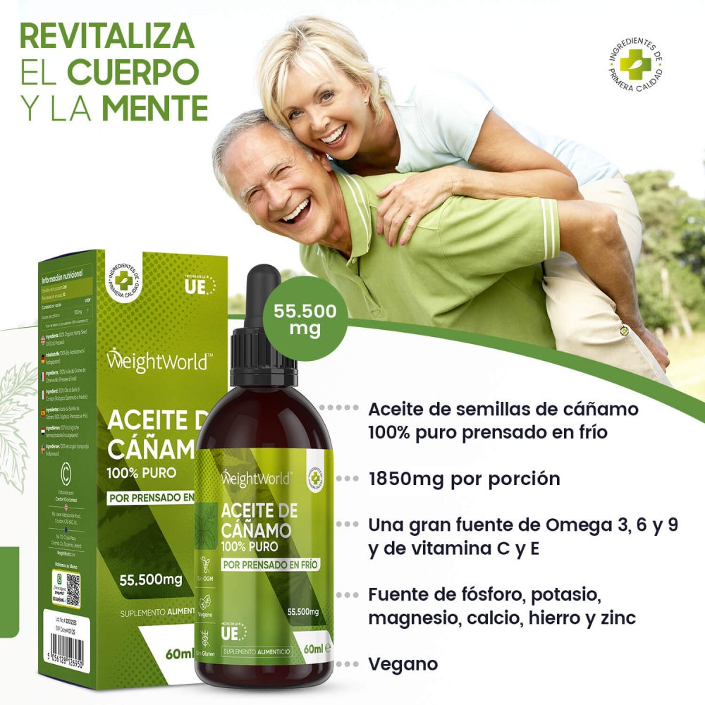 - Envase de 60 ml de aceite de semilla de cáñamo para 1 mes