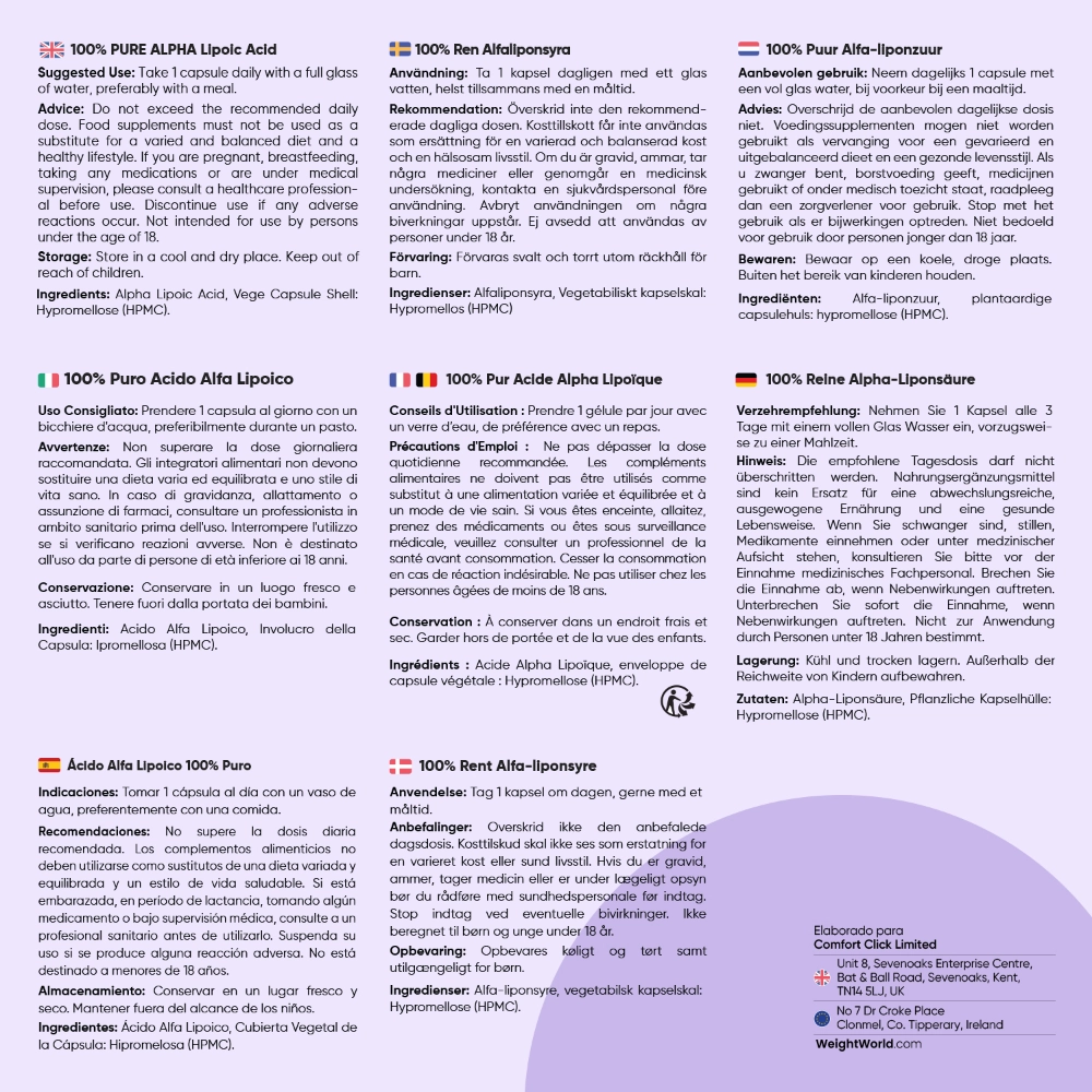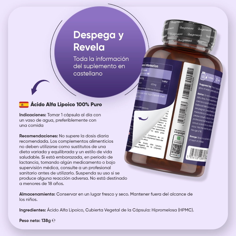 Ácido Alfa Lipoico, Cubierta Vegetal de la Cápsula: Hipromelosa (HPMC).