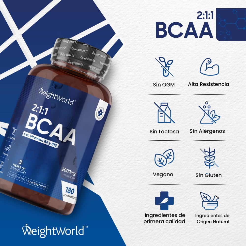 2000 mg - 180 comprimidos - Fórmula con Aminoácidos Leucina, Valina e Isoleucina