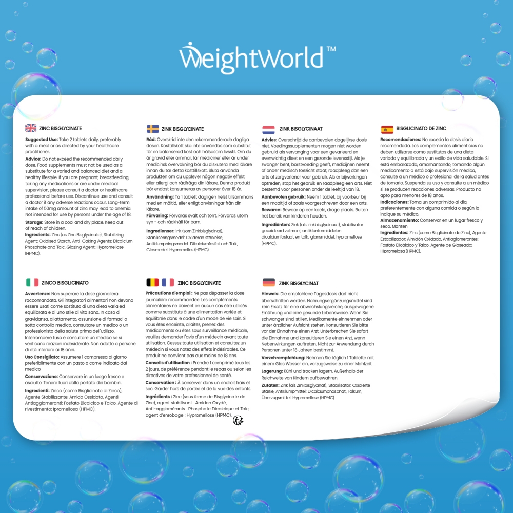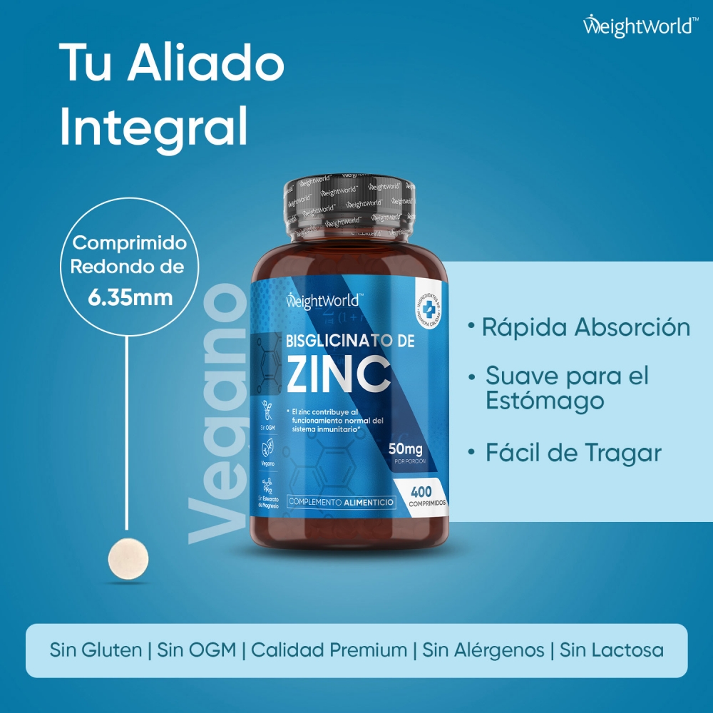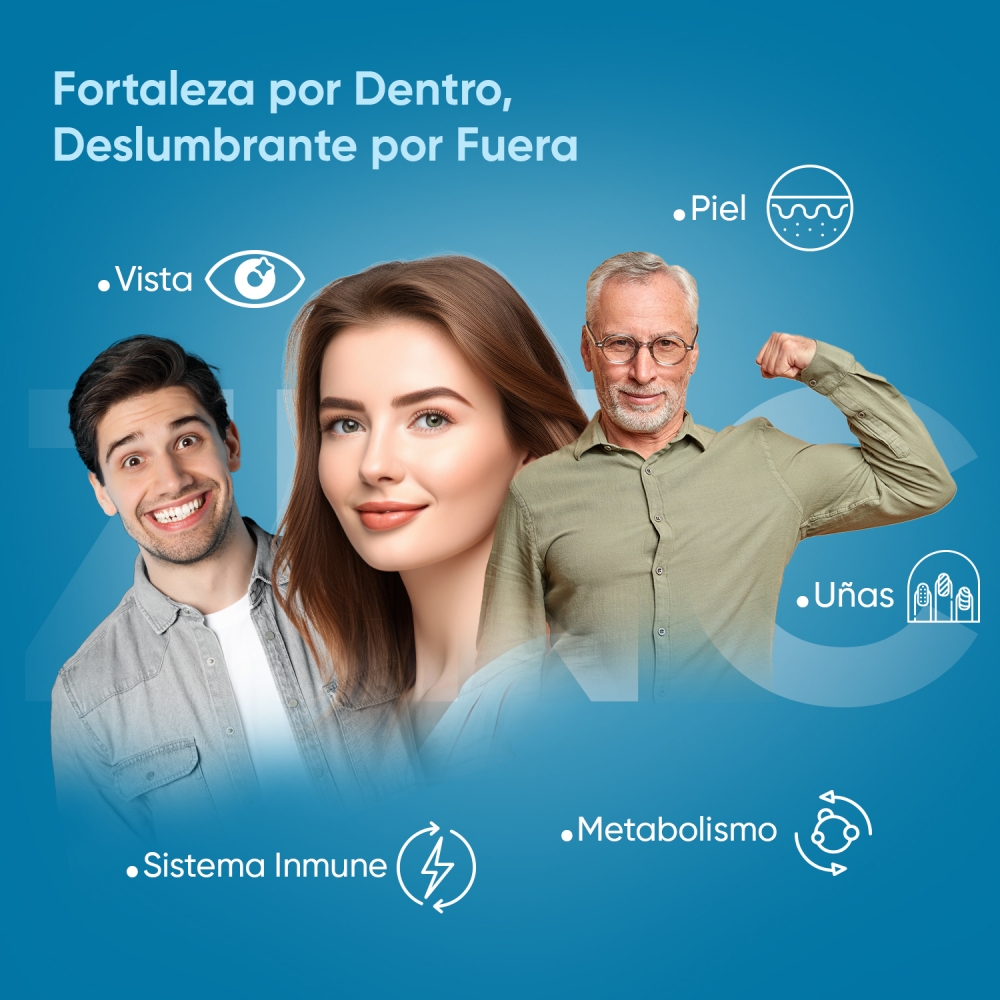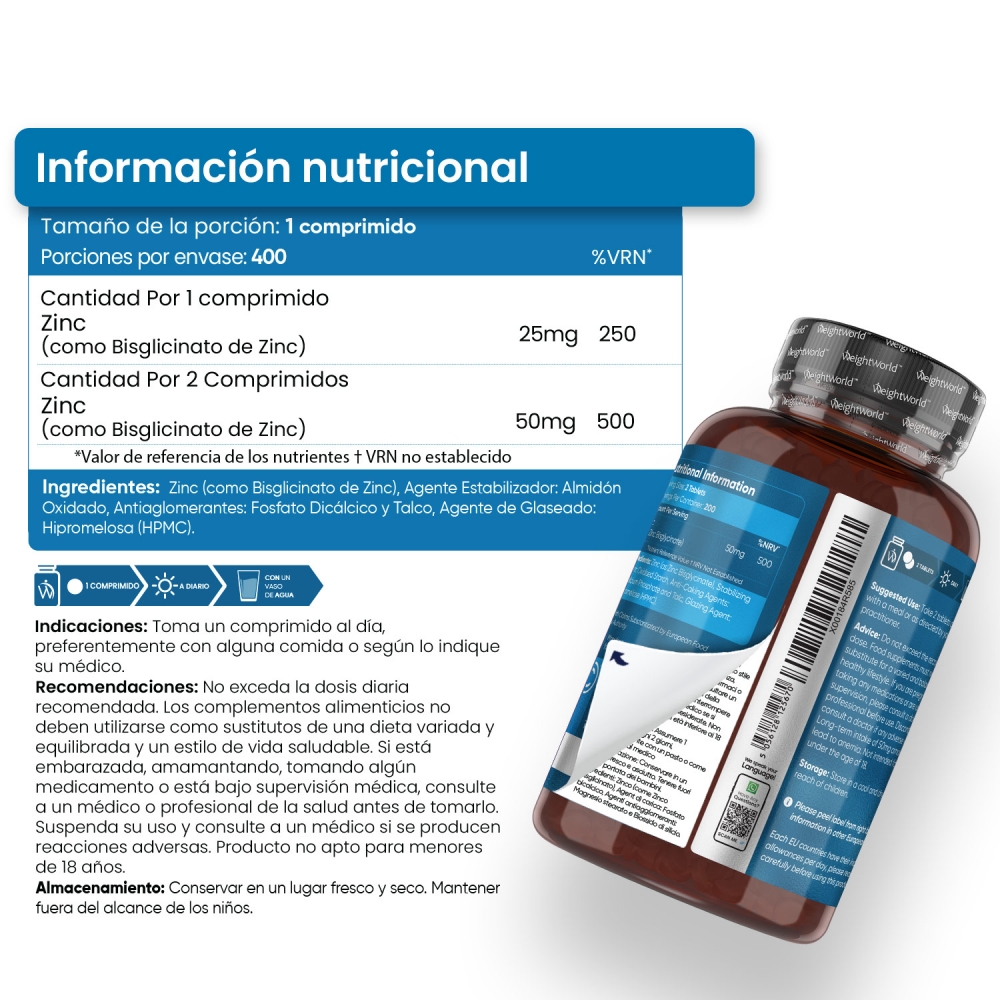 - Potente dosis de 25 mg de Bisglicinato de Zinc por comprimido