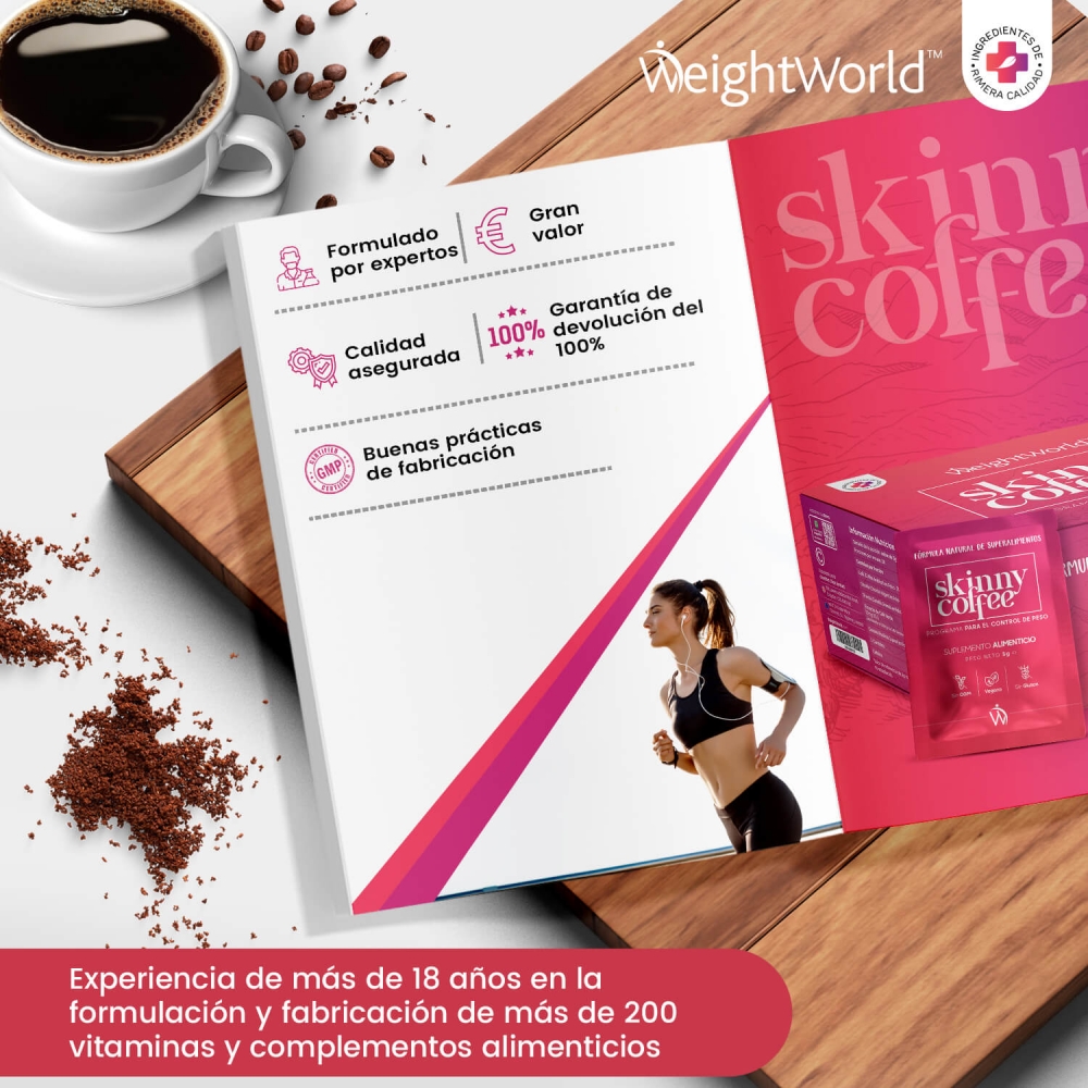 Este skinny coffee viene avalado por WeightWorld, tu marca de confianza presente en el mercado desde el año 2006. Estas son las cualidades únicas de nuestro suplemento.