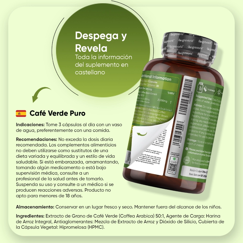 - Concentración potente: 21.000 mg de café verde arábigo de alta calidad