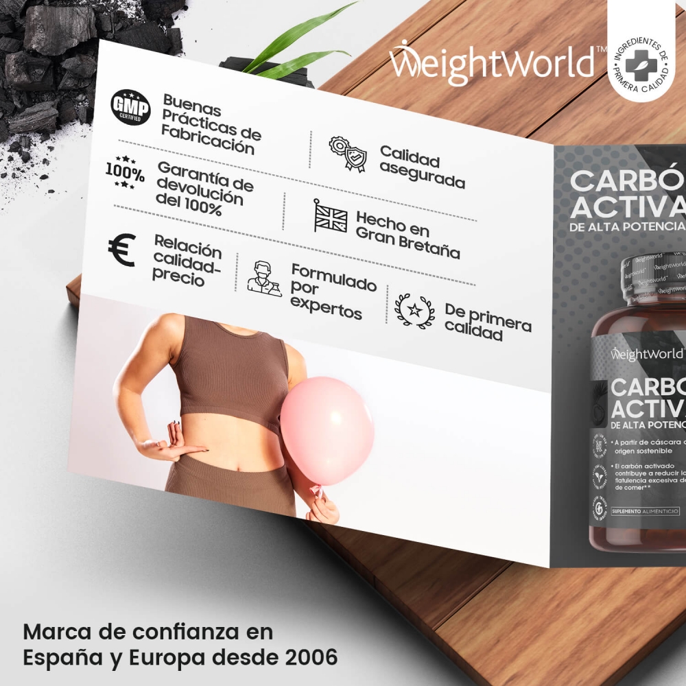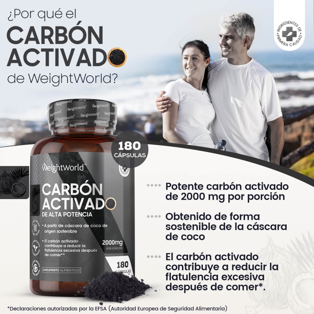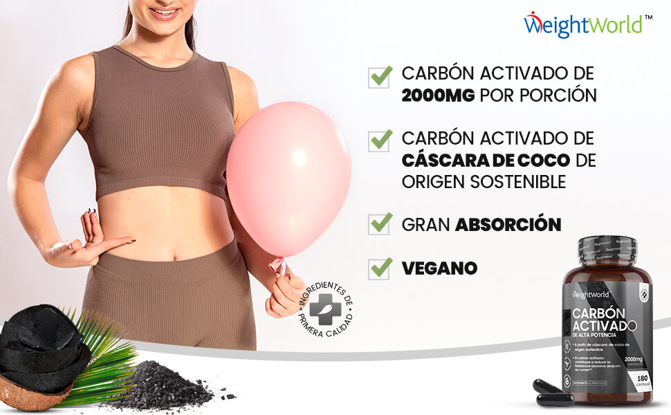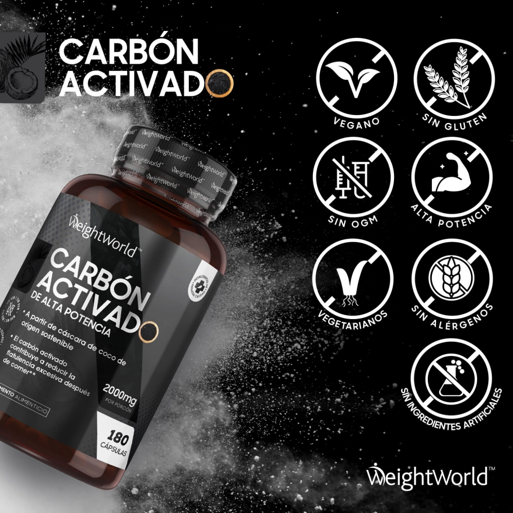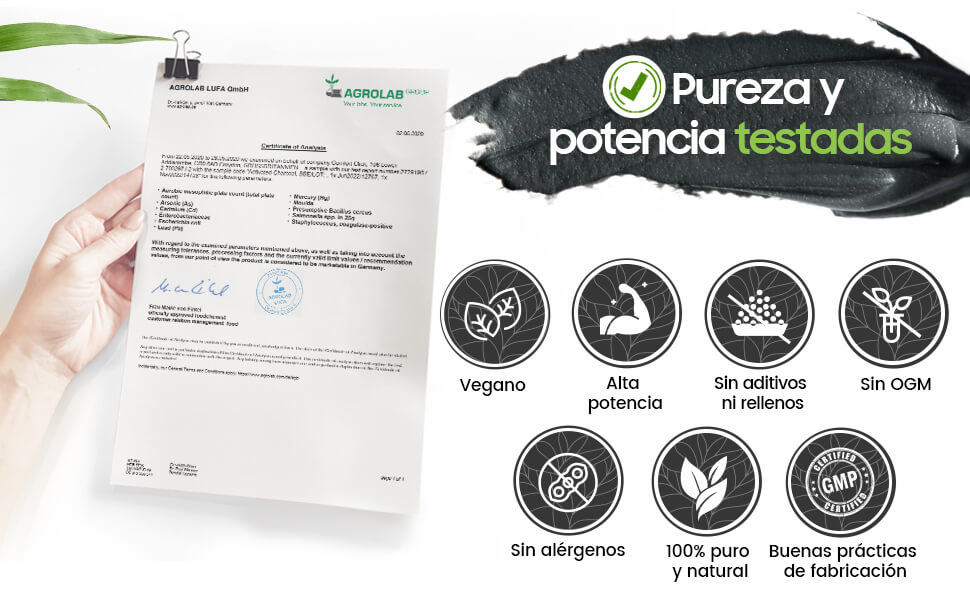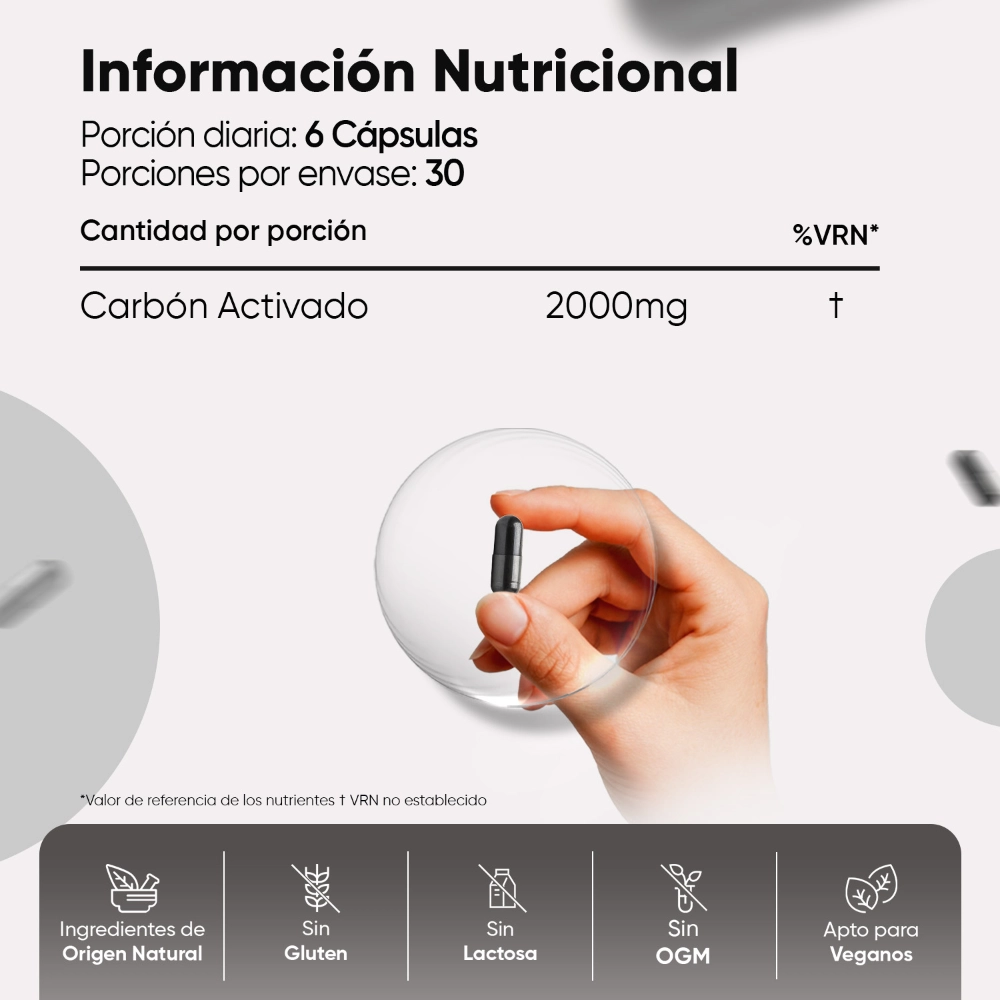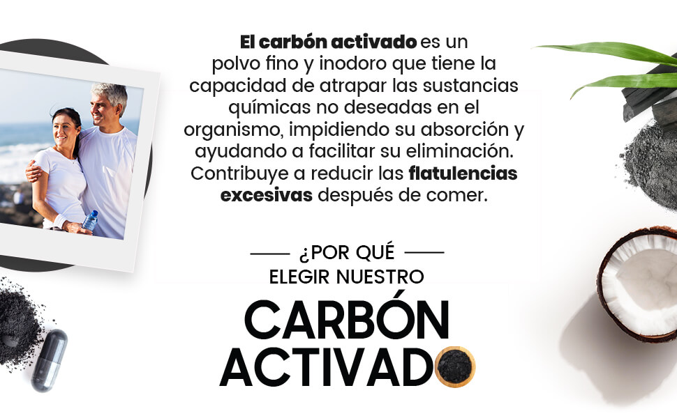 Polvo de carbón activado (origen de cáscara de coco), hipromelosa
