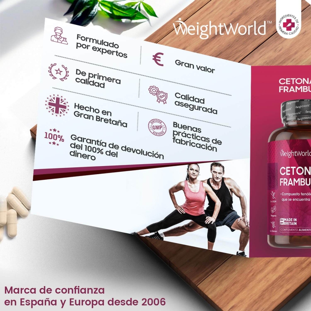 Las cápsulas de Cetonas de Frambuesa vienen avaladas por WeightWorld, tu marca de confianza presente en el mercado desde el año 2006. Estas son las cualidades únicas de este suplemento.