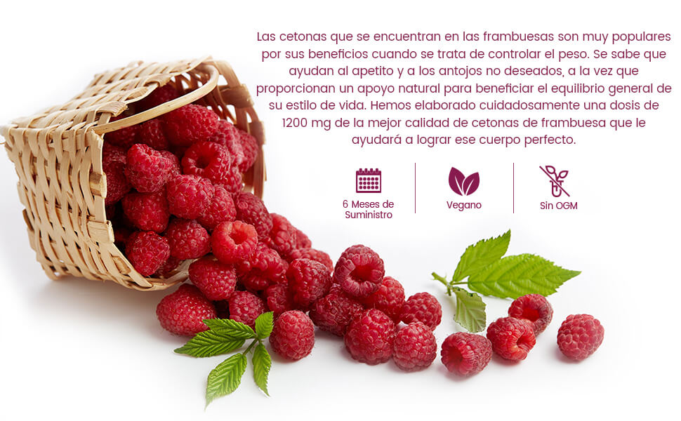 - Potente dosis de 1200 mg de extracto de frambuesa por cápsula