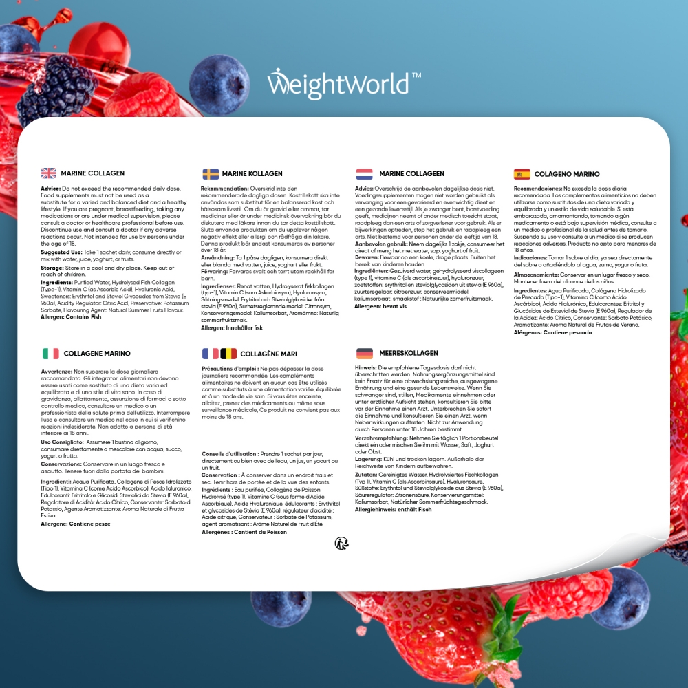 El complemento alimenticio de colágeno marino líquido viene avalado por WeightWorld, tu marca de confianza presente en el mercado desde el año 2006. Más de 15 años de historia garantizan la máxima calidad de todos nuestros suplementos y productos, formulados con ingredientes de origen natural y sin OGM. Miles de clientes en más de una decena de países han depositado ya su confianza y bienestar en nosotros.