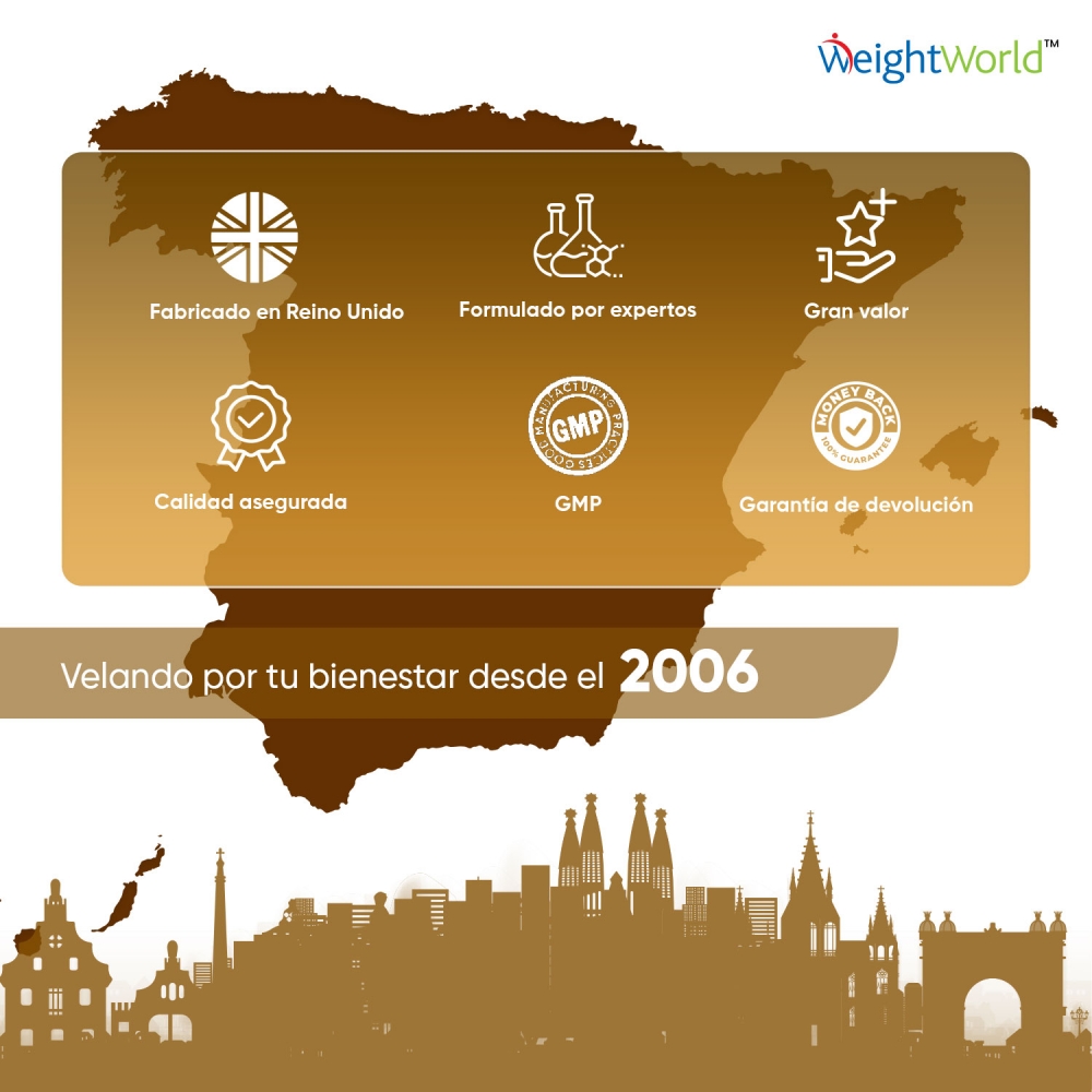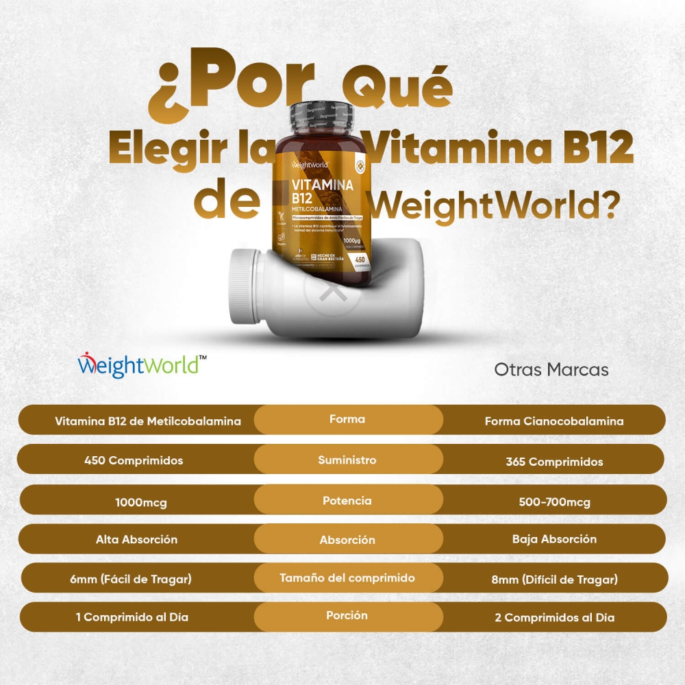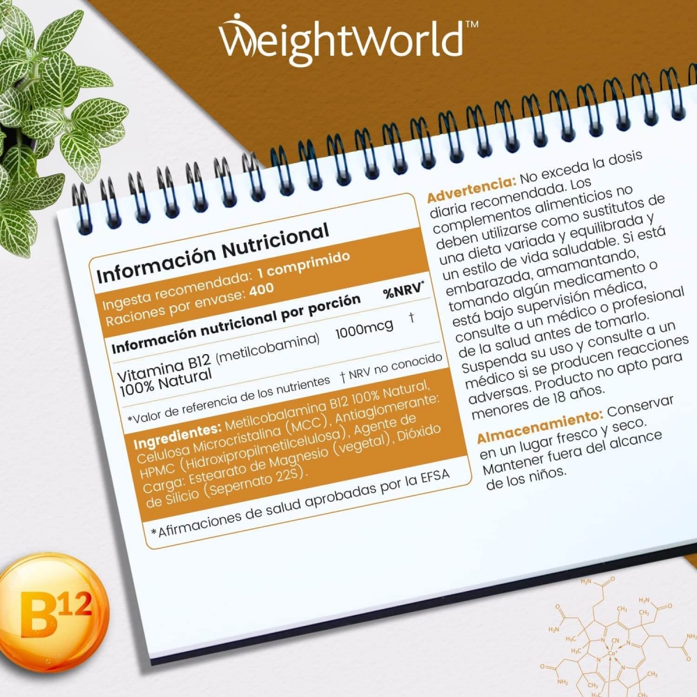 Las pastillas de B12 vienen avaladas por WeightWorld, tu marca de confianza presente en el mercado desde el año 2006. Más de 15 años de historia garantizan la máxima calidad de todos nuestros suplementos y productos, formulados con ingredientes de origen natural y sin OGM. Miles de clientes en más de una decena de países han depositado ya su confianza y bienestar en nosotros.