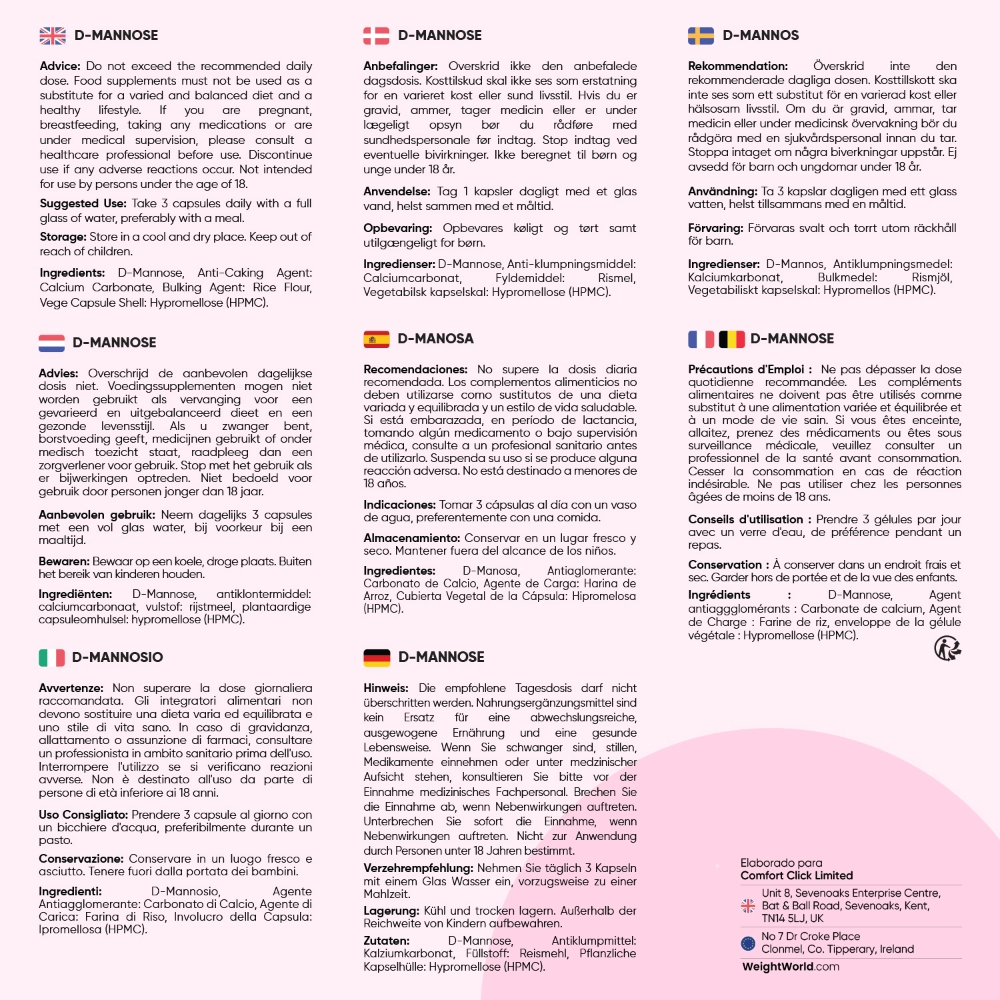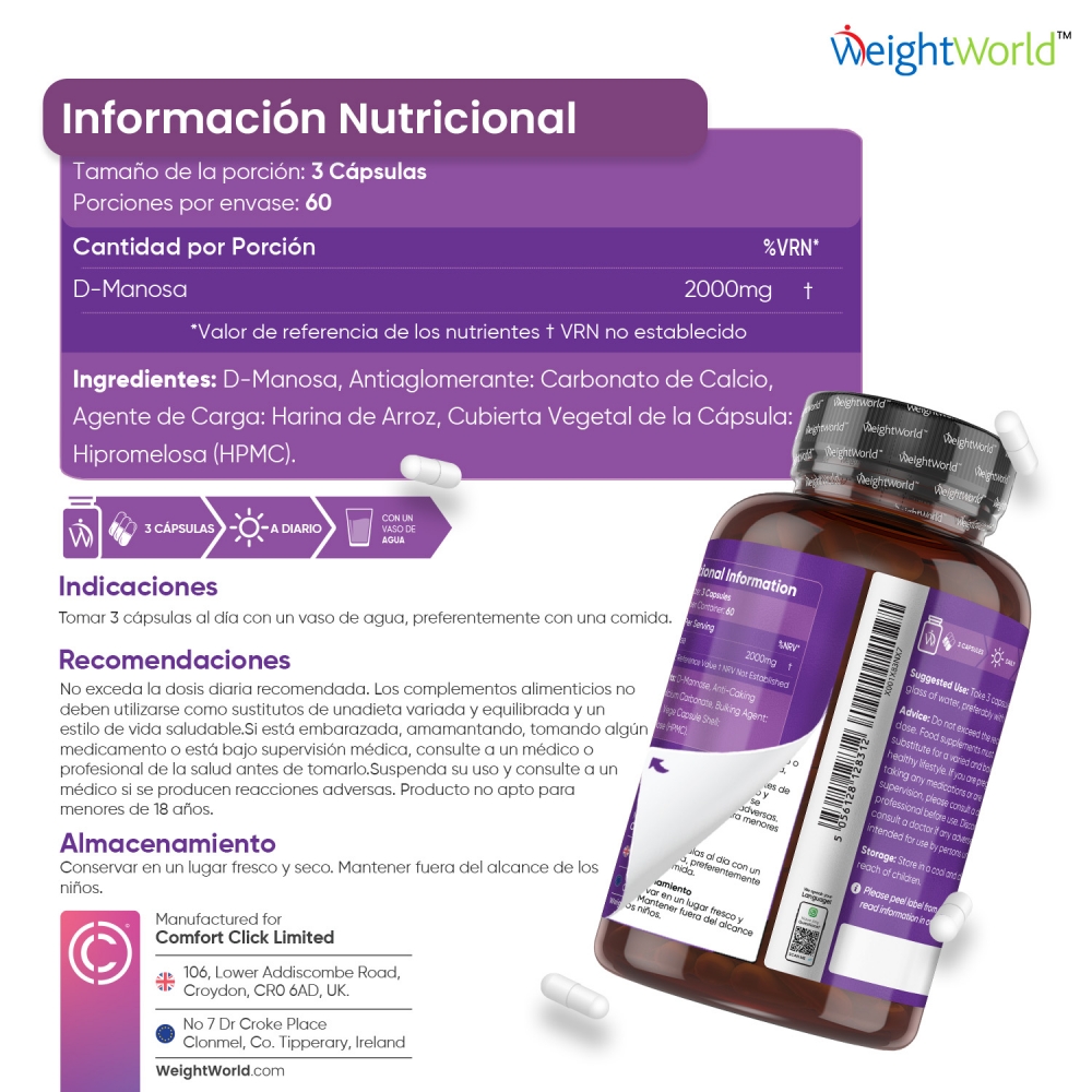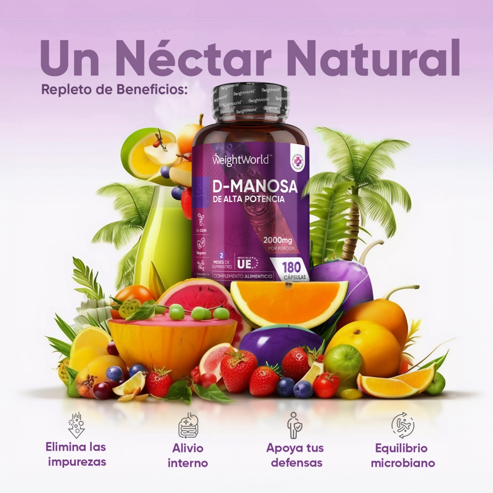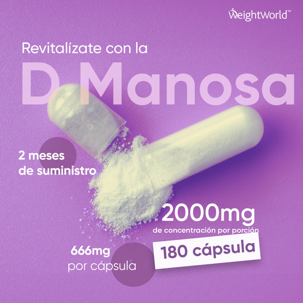 - Potente dosis de 2000 mg de D-Manosa por porción (3 cápsulas)