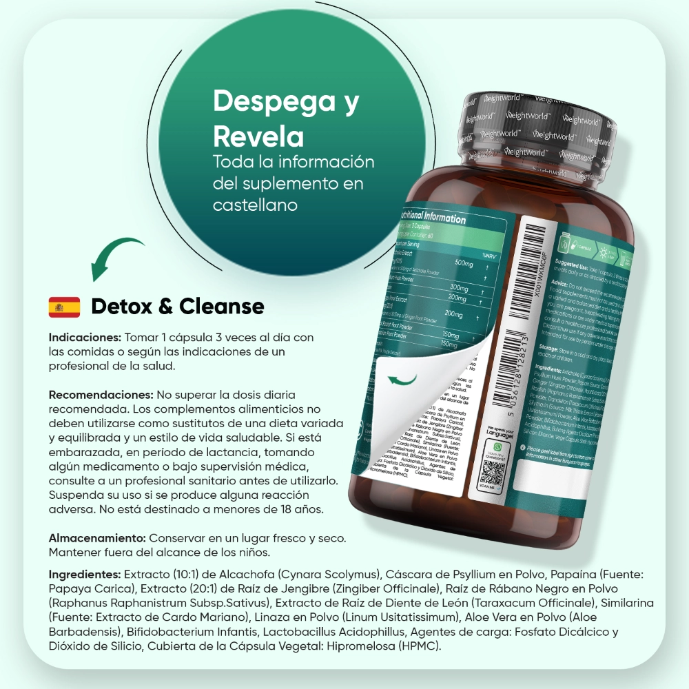 180 cápsulas | Suplemento Detox con Extractos Botánicos y Probióticos