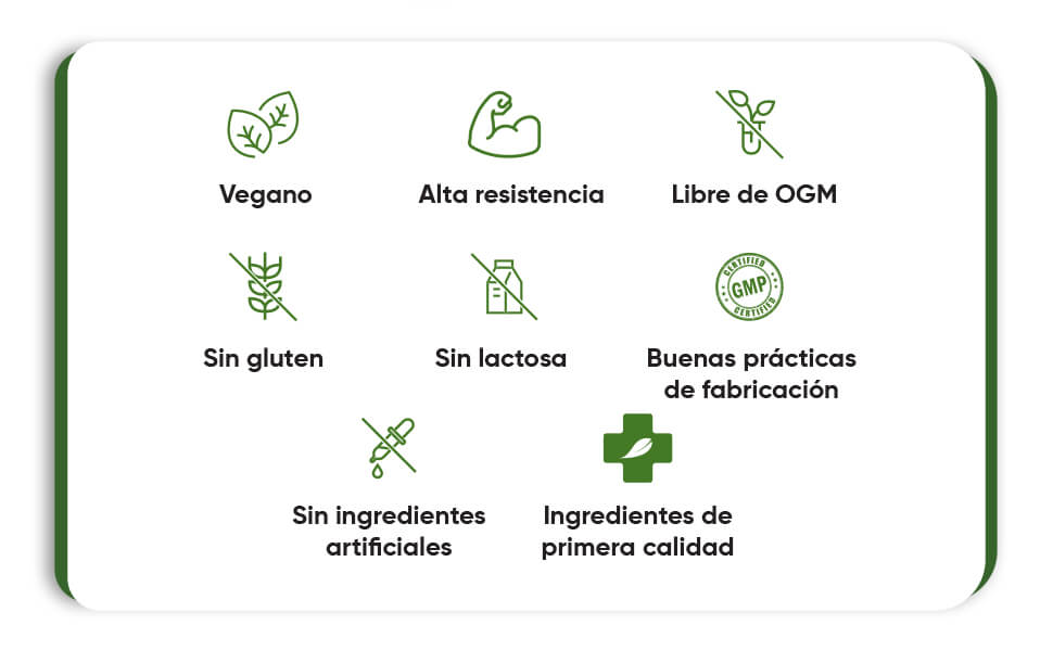 - Es un suplemento de origen 100 % natural y máxima calidad