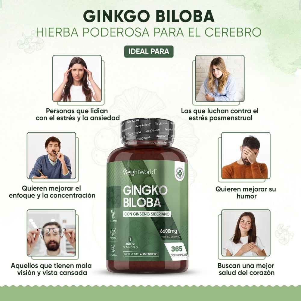 - Poderosa dosis de 6000 mg de Ginkgo Biloba por comprimido