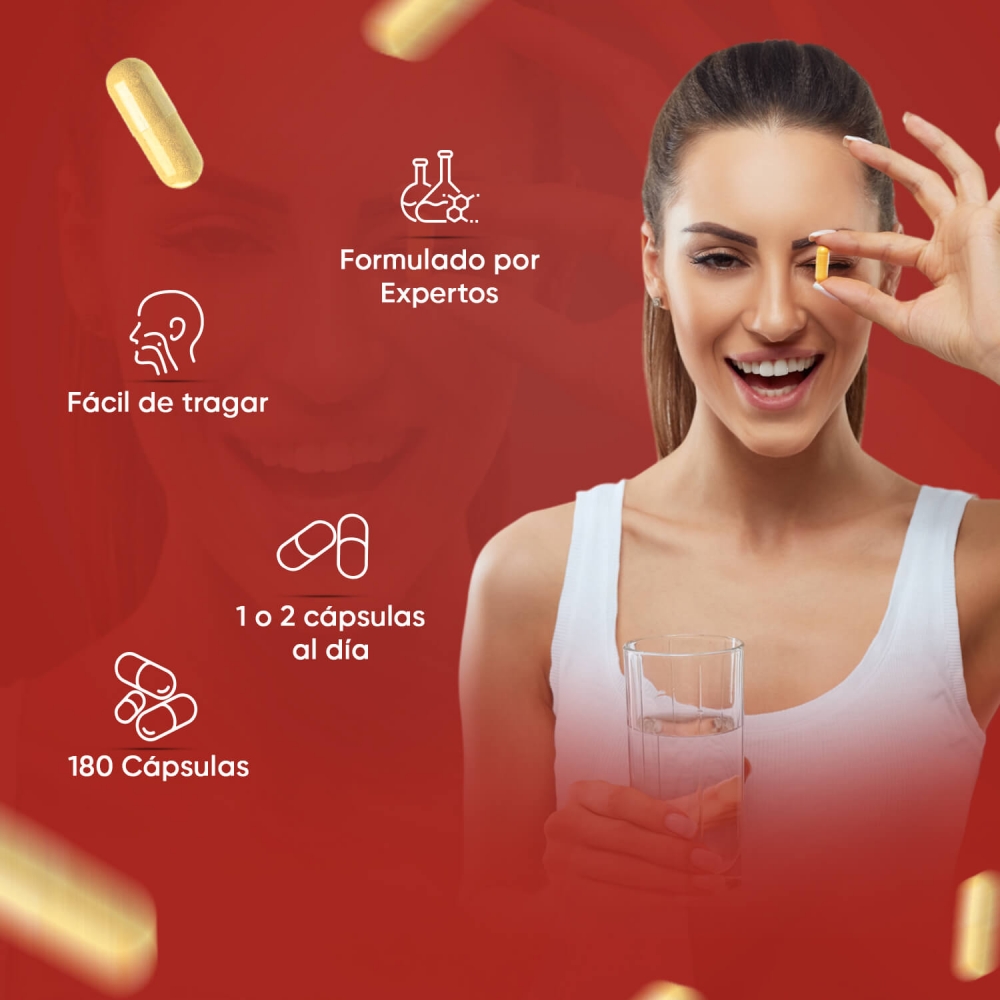- 180 cápsulas para un suministro de hasta 6 meses (1 o 2 al día)