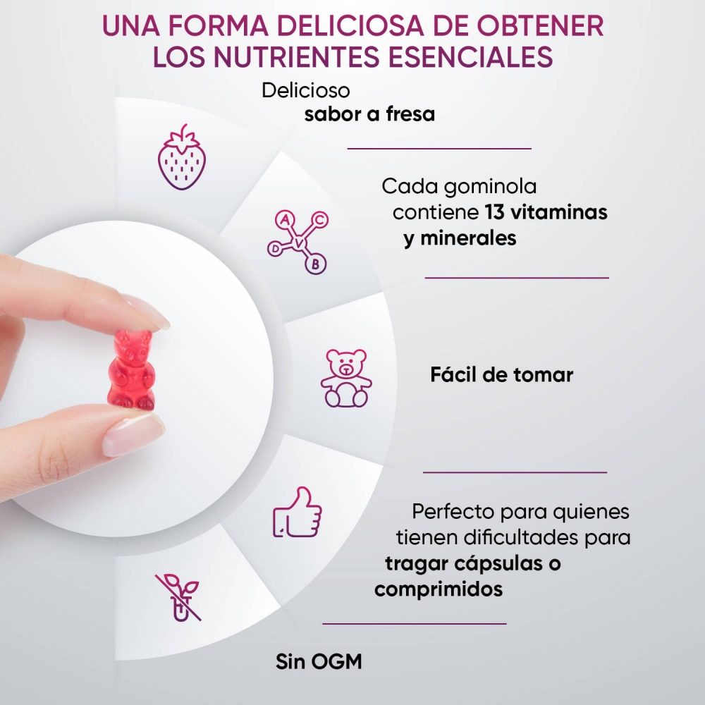13 Vitaminas y Minerales 120 Gominolas | Para Hombres y Mujeres