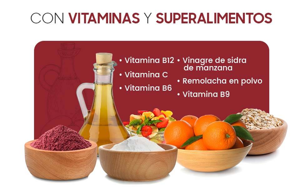 - Enriquecido con Remolacha, Vitamina C y Vitaminas B6 y B9