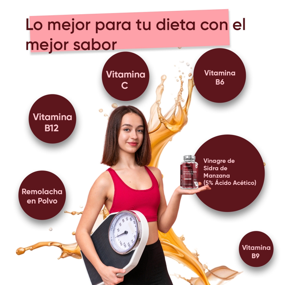 Estas gominolas son ideales para todo aquel que quiera un apoyo en su dieta y para aquellos que quieran descubrir los beneficios del vinagre de sidra de manzana pero no soportan su sabor picante: el formato de gominola hace que tomarlo sea sencillo y sabroso.