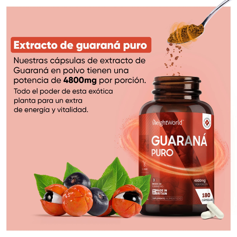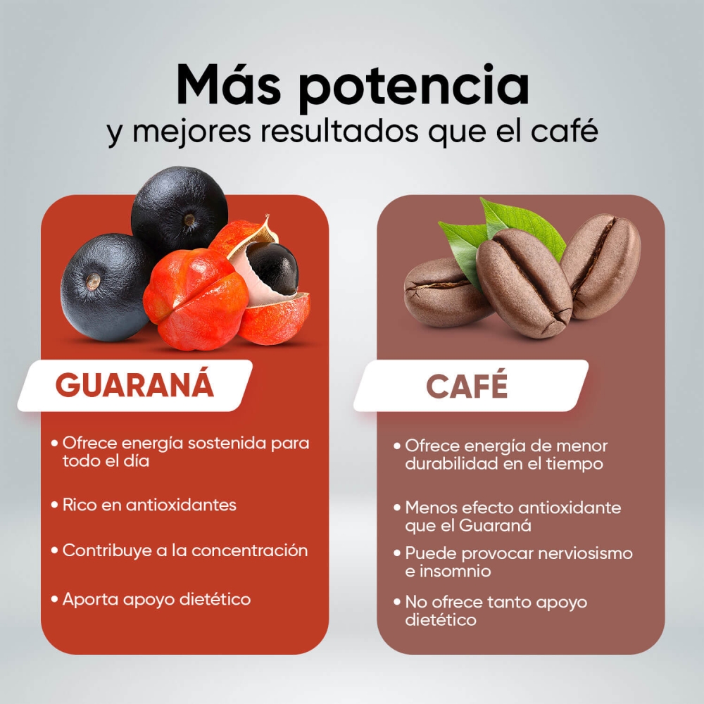 • Potente dosis de 4800 mg de extracto de guaraná por porción