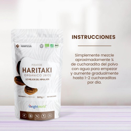 Los suplementos de Haritaki están diseñados para complementar una dieta equilibrada y ejercicio y no deben consumirse independientemente de ambos como un suplemento de reemplazo de comidas. Los Polvos Bio Haritaki son aptos para el consumo tanto de veganos como de vegetarianos, pero recuerde siempre consultar la lista completa de ingredientes si tiene alguna alergia específica.