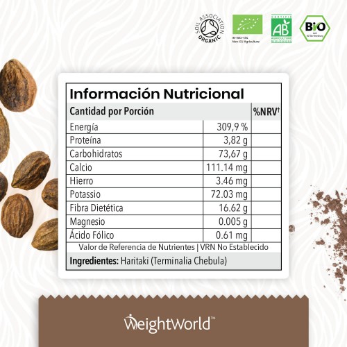 Este producto es un suplemento herbal Haritaki orgánico puramente formulado que tiene como objetivo tratar varios componentes de la vitalidad y la inmunidad para mejorar tu bienestar general. Haritaki es esencialmente un todoterreno muy fuerte en el mundo de los suplementos y aborda los beneficios corporales de una manera holística.