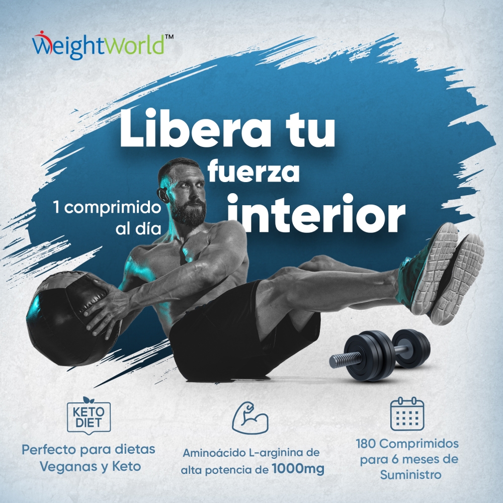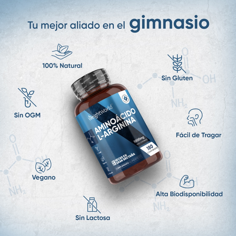 - Potente dosis de 3000 mg* de L-Arginina por porción (3 comprimidos)