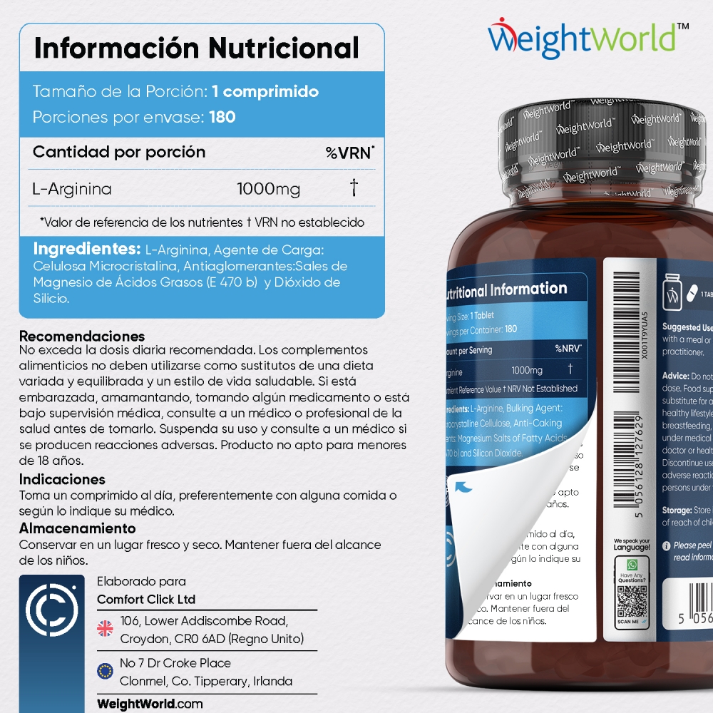 - *En España la dosis diaria máxima permitida de L-Arginina es 3000 mg (3 comprimidos)