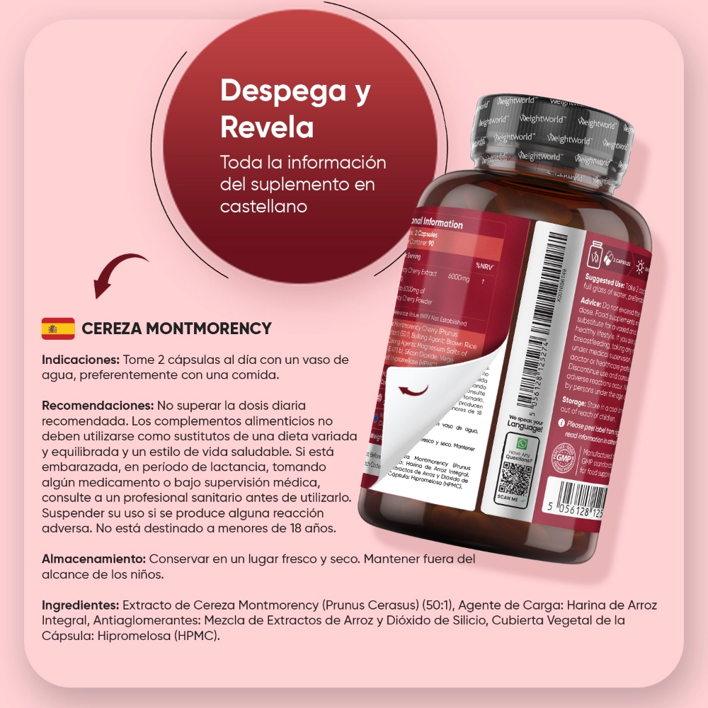 - Fórmula potente - WeightWorld ha desarrollado un complemento premium natural con una potencia de 3000 mg formulada con el mejor extracto de Cereza Montmorency liofilizado.