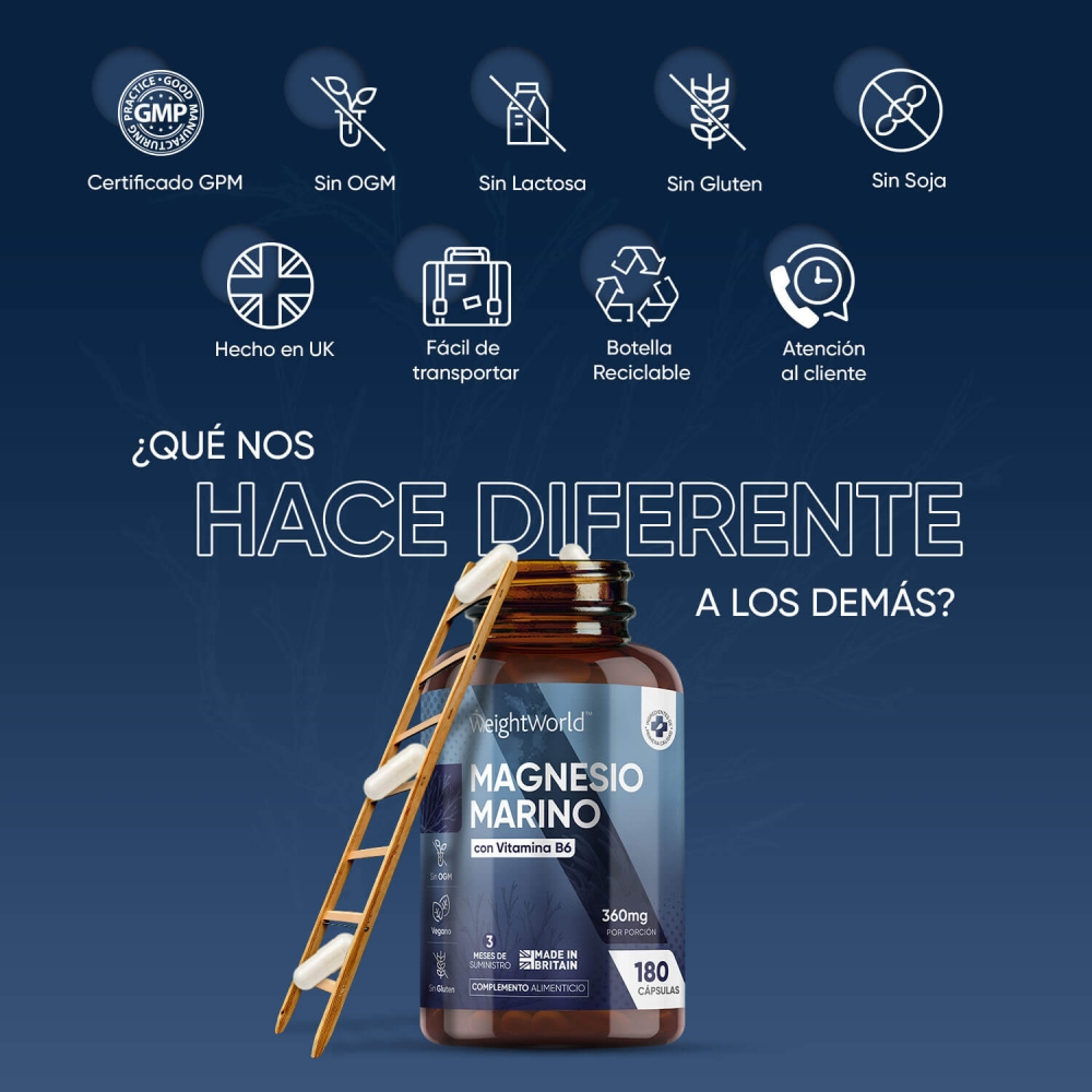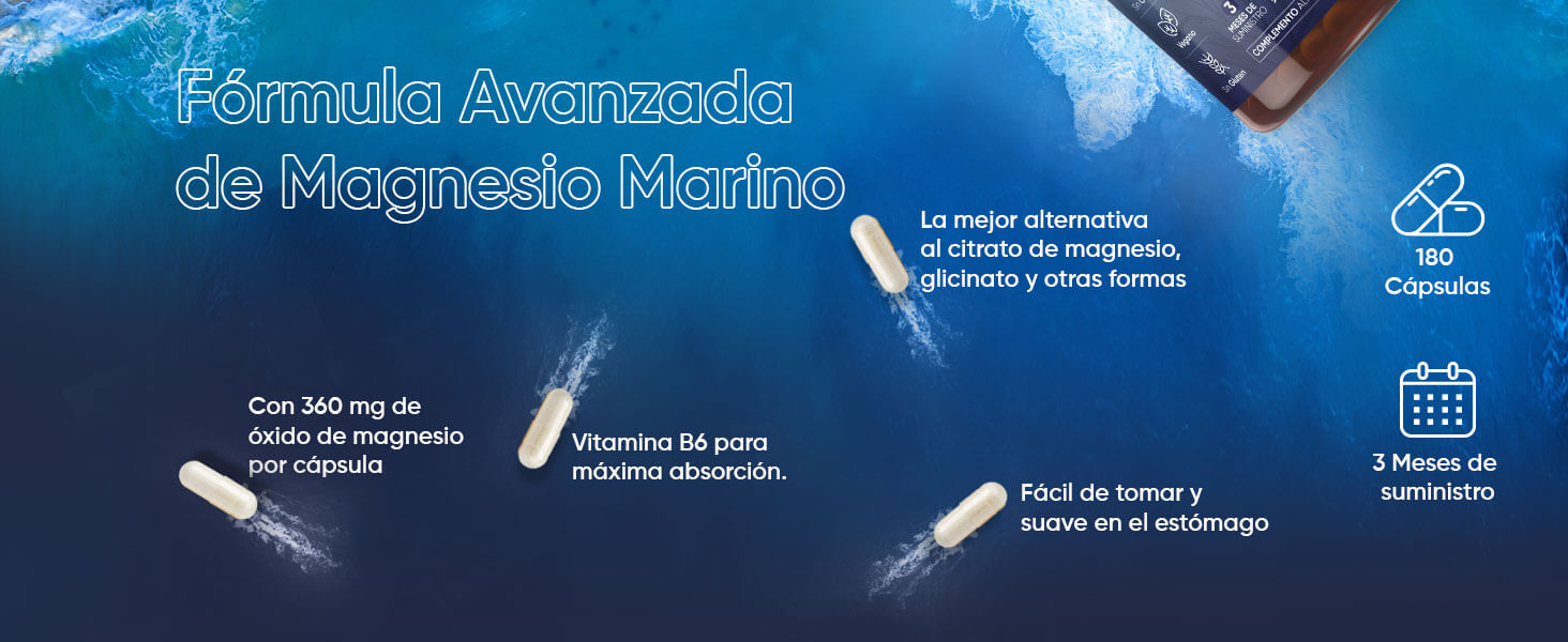 - Potente dosis de 360 mg de magnesio marino por porción (2 cápsulas)