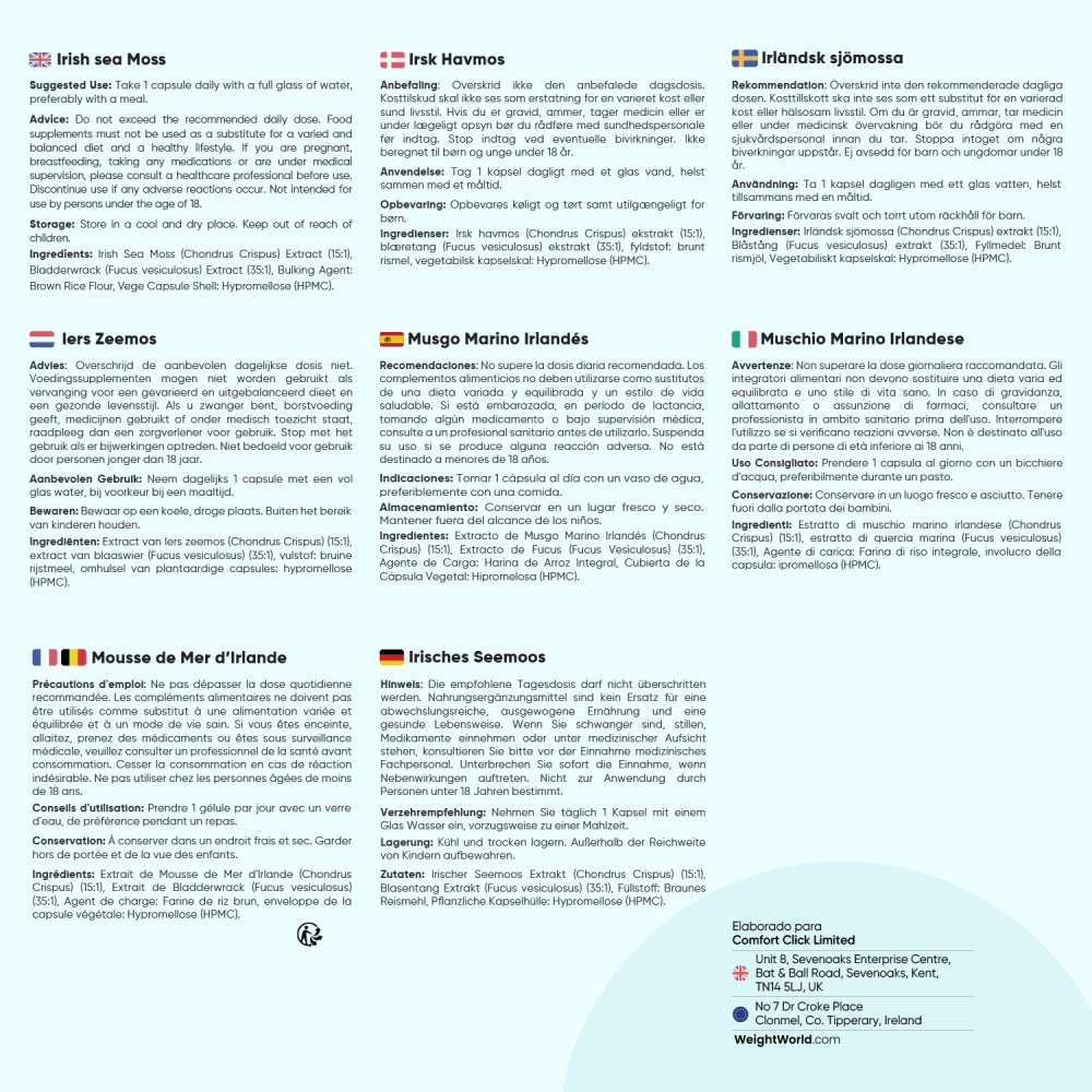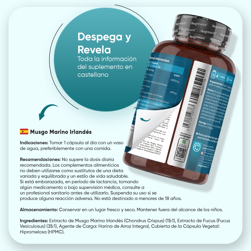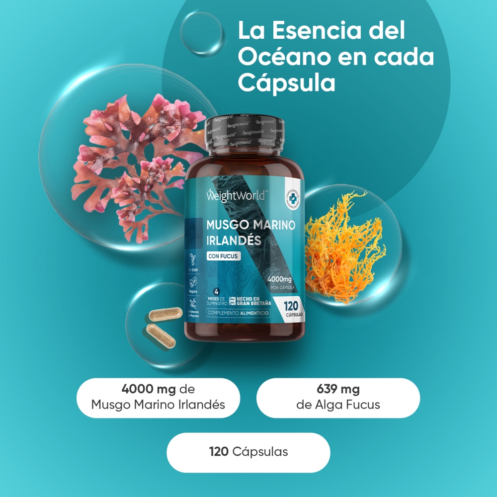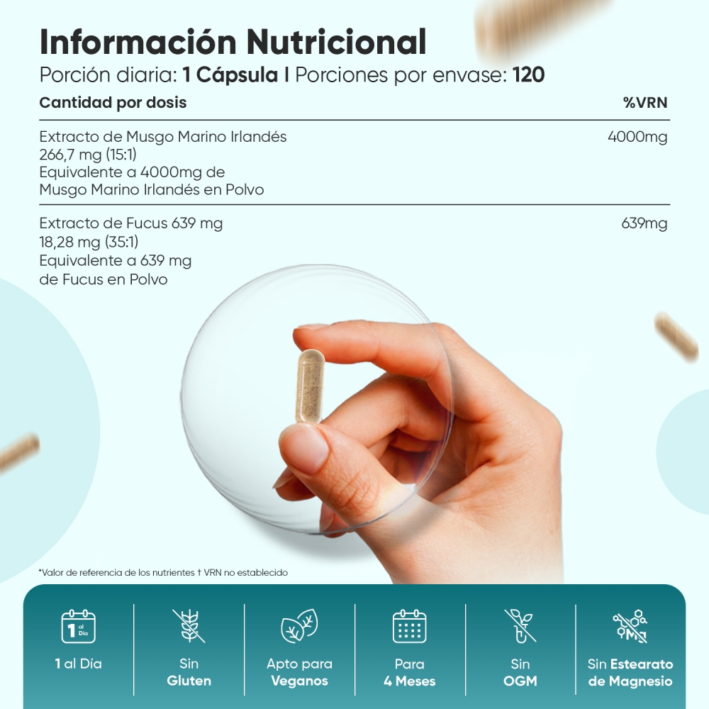 - Potente dosis de 4000 mg de extracto de Musgo Marino Irlandés