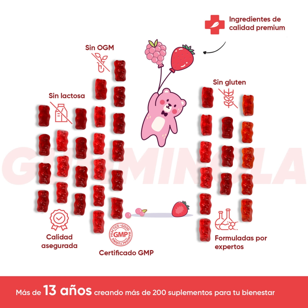 Además, estas gominolas masticables de Omega 3, 6 y 9 cuentan con la certificación GMP de seguridad alimentaria y están avaladas por el registro sanitario de España (AESAN) y de la Unión Europea.