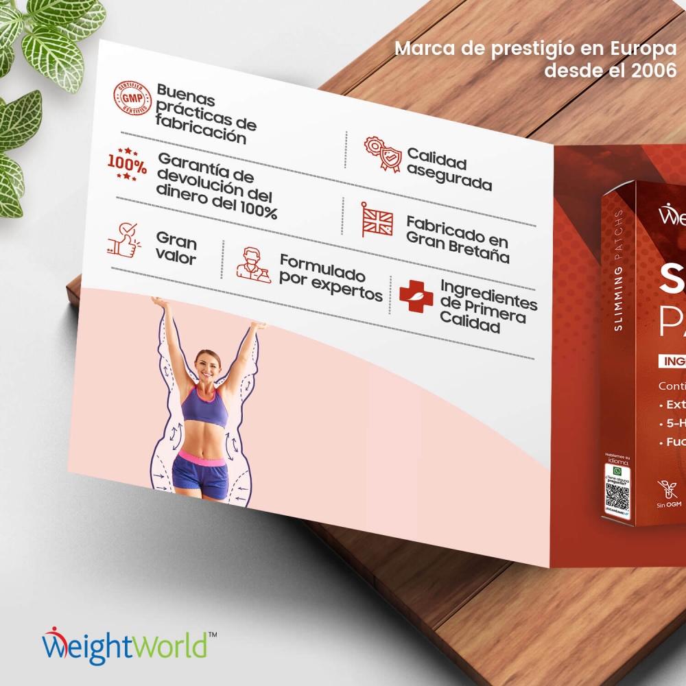 Los parches que adelgazan con guaraná, 5 HTP y fucus vienen avalados por WeightWorld, tu marca de confianza presente en el mercado desde el año 2006. Más de 15 años de historia garantizan la máxima calidad de todos nuestros suplementos y productos, formulados con ingredientes de origen natural y sin OGM. Miles de clientes en más de una decena de países han depositado ya su confianza y bienestar en nosotros.