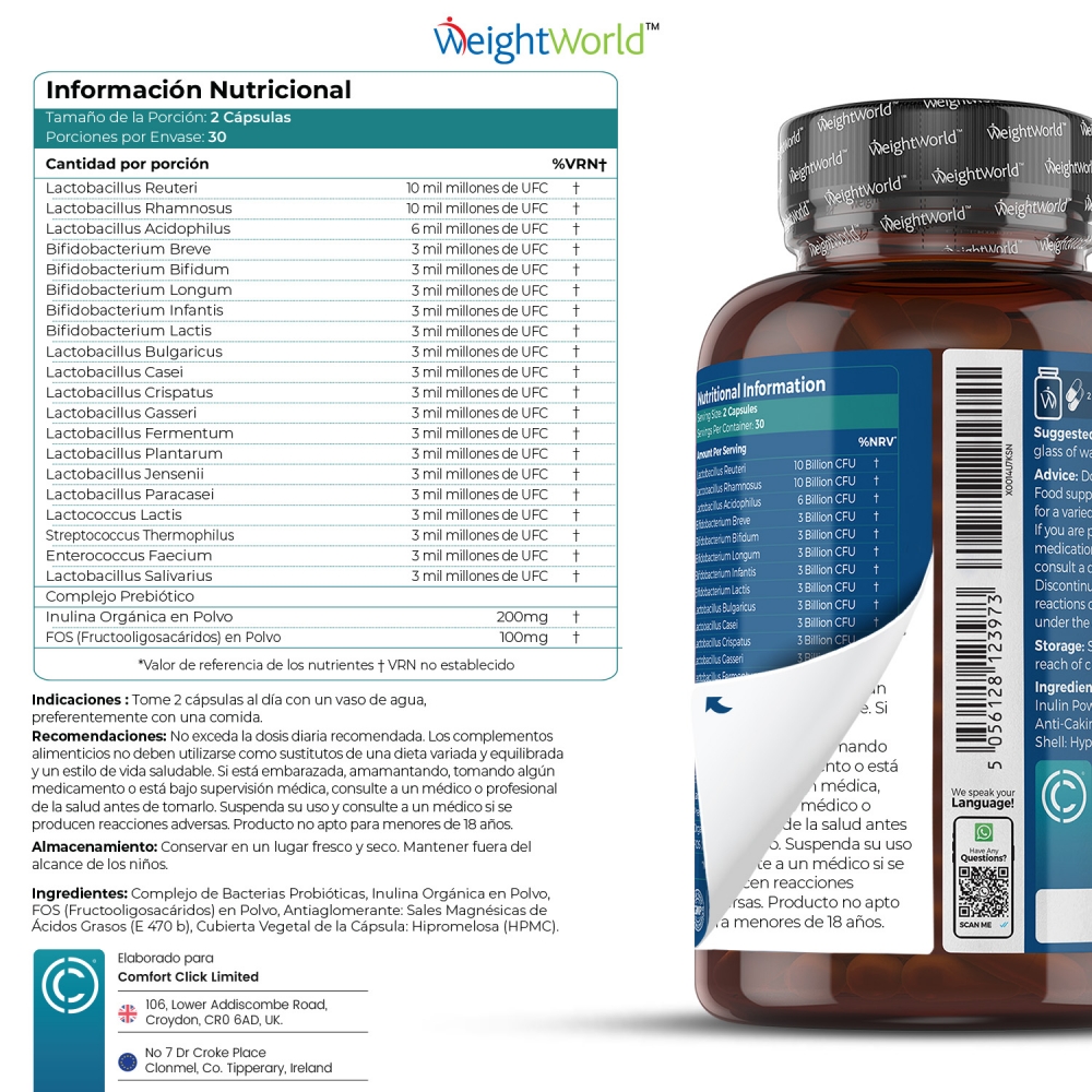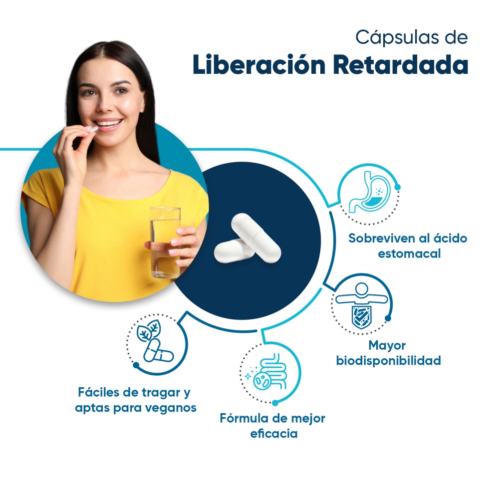 - Con 20 cepas de bacterias beneficiosas: Lactobacillus Reuteri, Rhamnosus, Acidophilus y más