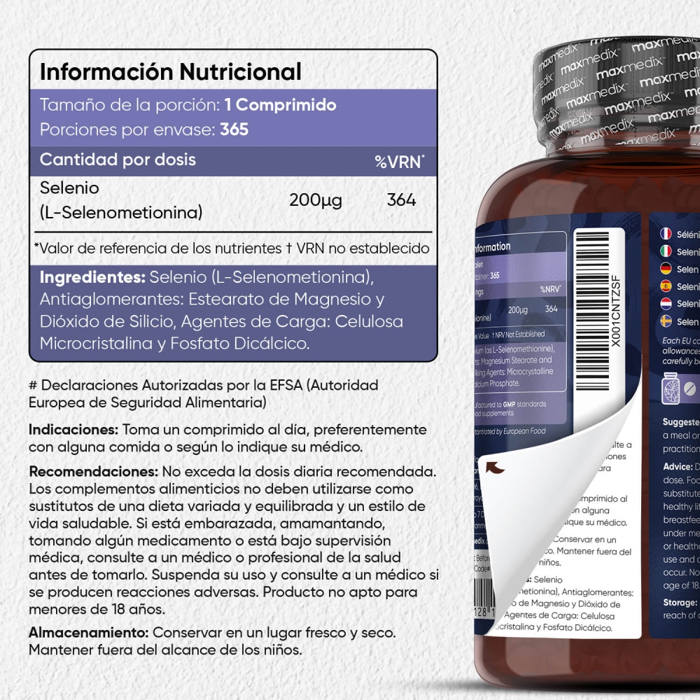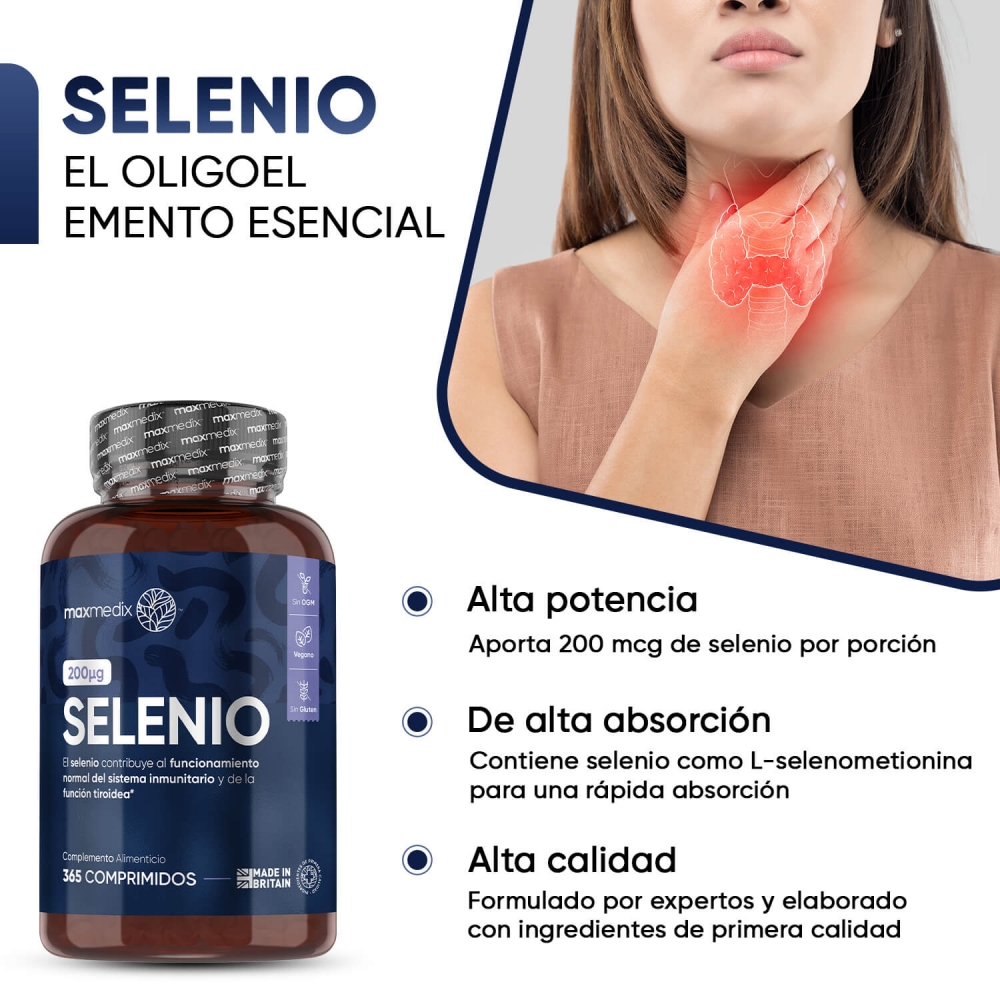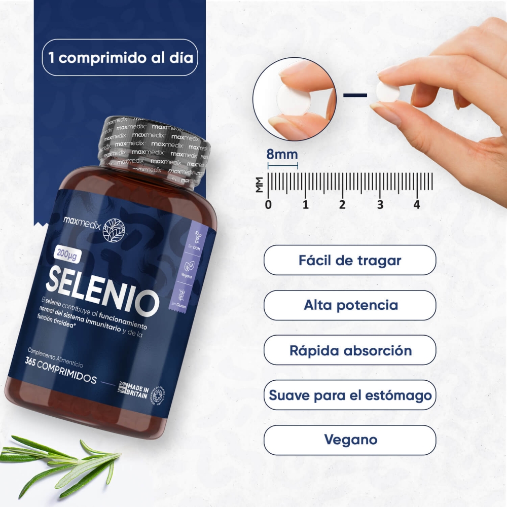 - Poderosa dosis de 200 mcg de selenio por comprimido