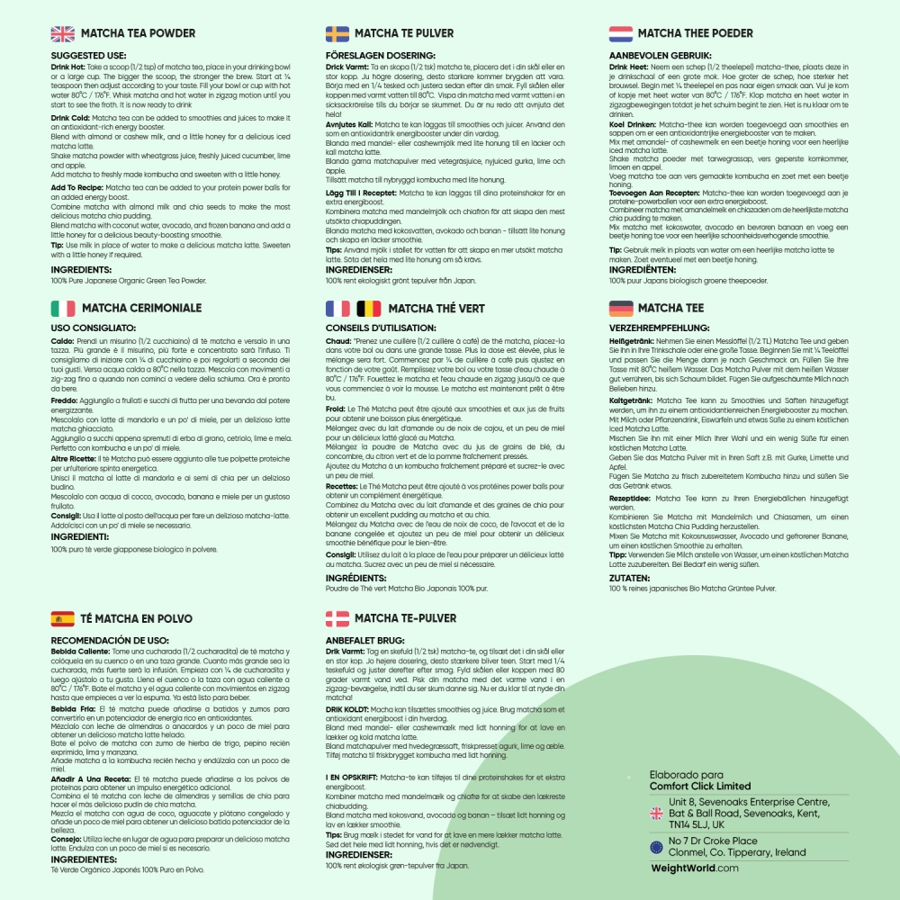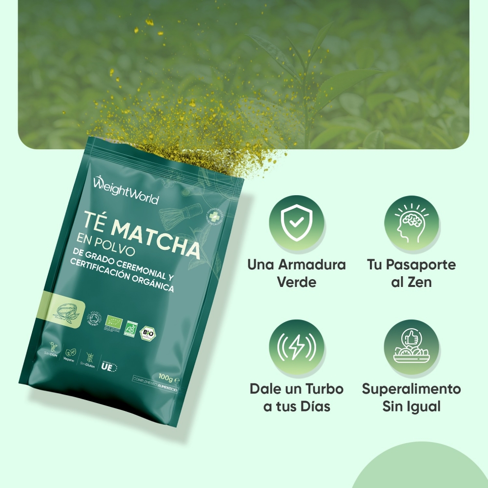 El Té Matcha Ceremonial viene avalado por WeightWorld, tu marca de confianza presente en el mercado desde el año 2006. Estas son sus cualidades únicas.