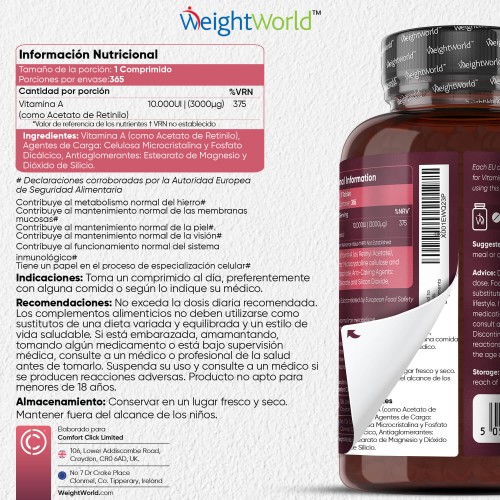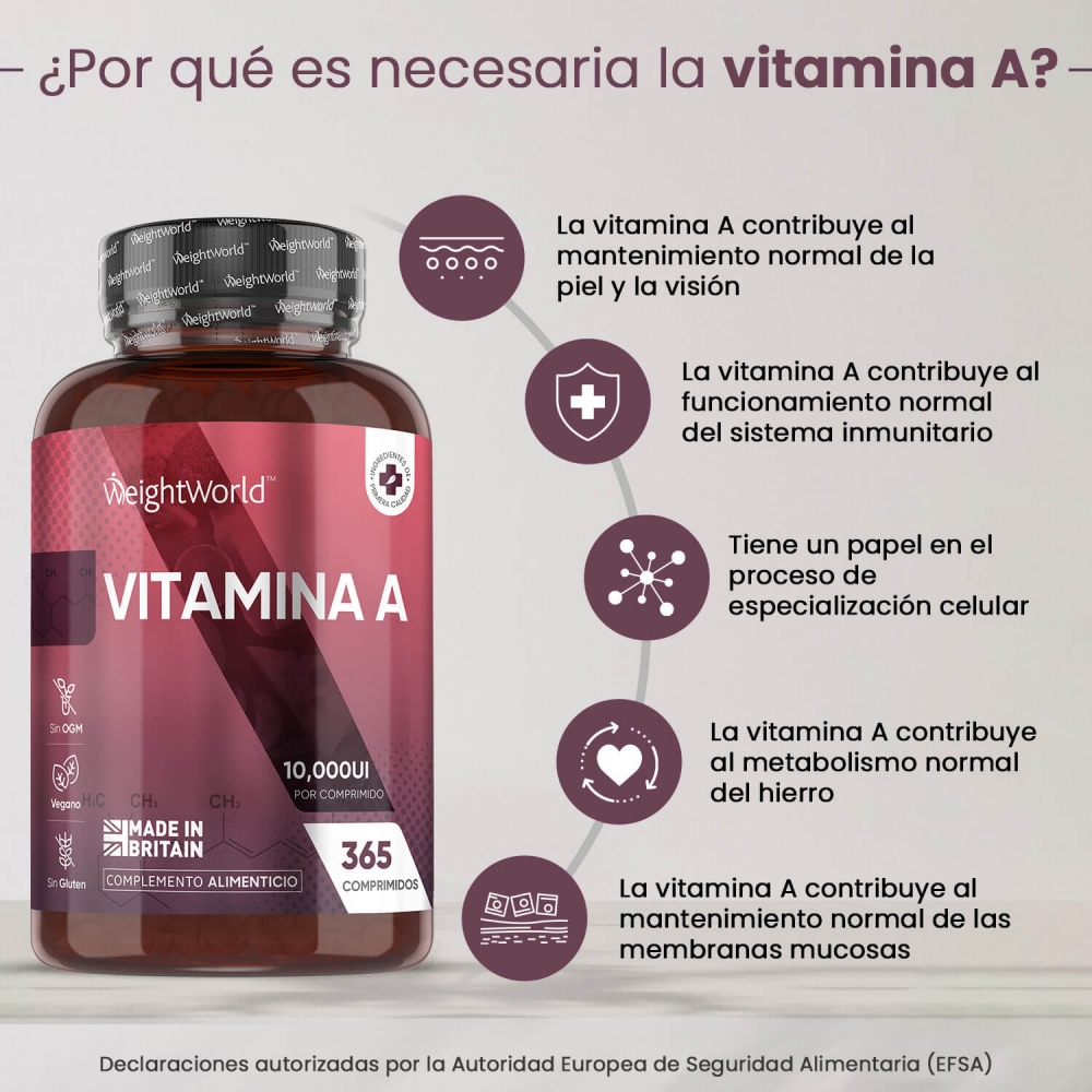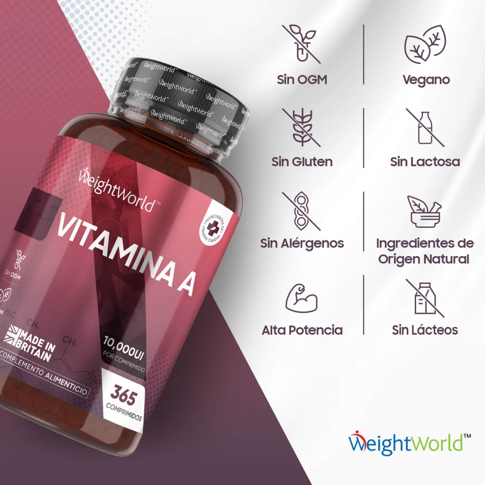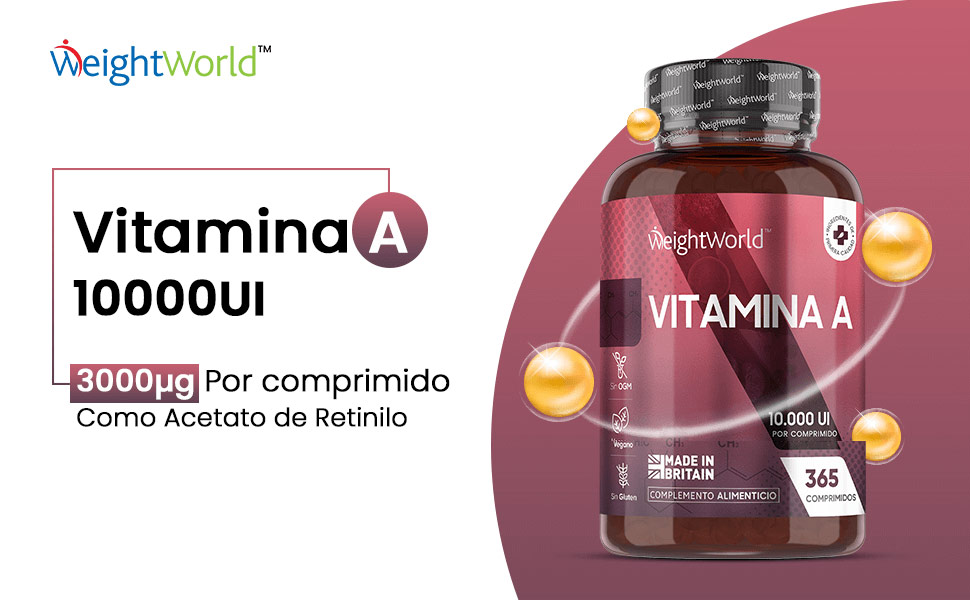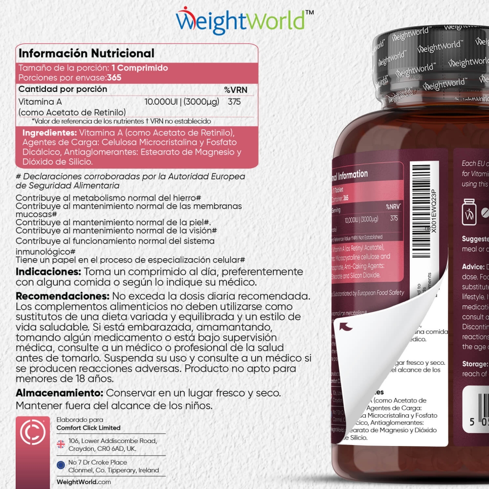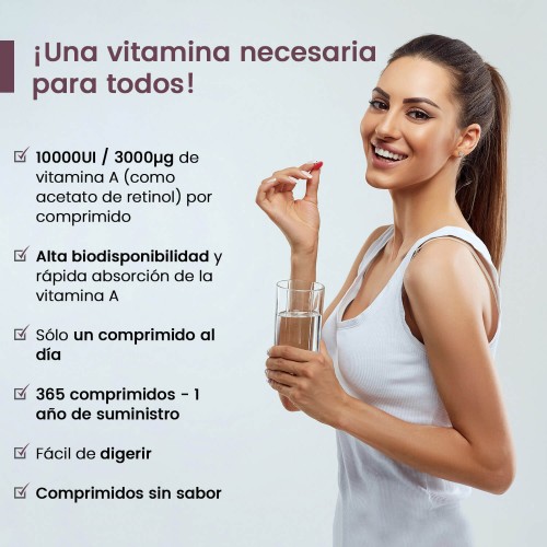 10.000 UI - 365 comprimidos - Acetato de Retinilo para la Piel, Vista y Sistema Inmune