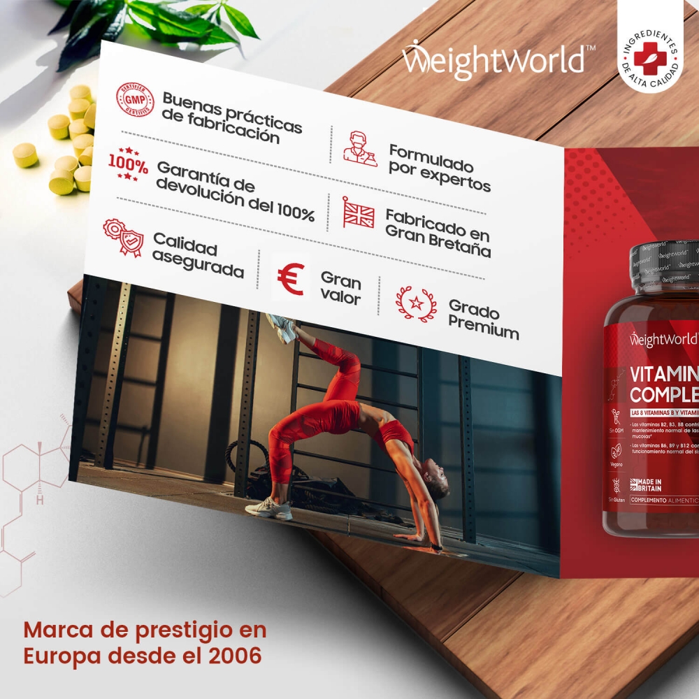 Los comprimidos de Vitamina B Complex están avalados por WeightWorld, tu marca de confianza presente en el mercado desde el año 2006. Estas son las cualidades únicas de este suplemento.