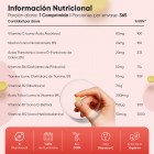 Vitamina C (como Ácido L-Ascórbico), Vitamina B3 (como Nicotinamida), Vitamina B5 (como Pantotenato D-Calcio), Vitamina B6 (como Clorhidrato de Piridoxina), Vitamina B1 (como Clorhidrato de Tiamina), Vitamina B2 (como Riboflavina), Vitamina B9 (como Ácido Fólico), Vitamina B7 (como D-Biotina), Vitamina B12 (como Metilcobalamina), Agentes de carga: Fosfato Dicálcico y Celulosa Microcristalina, Antiaglomerantes: Mezcla de Extractos de Arroz y Dióxido de Silicio.