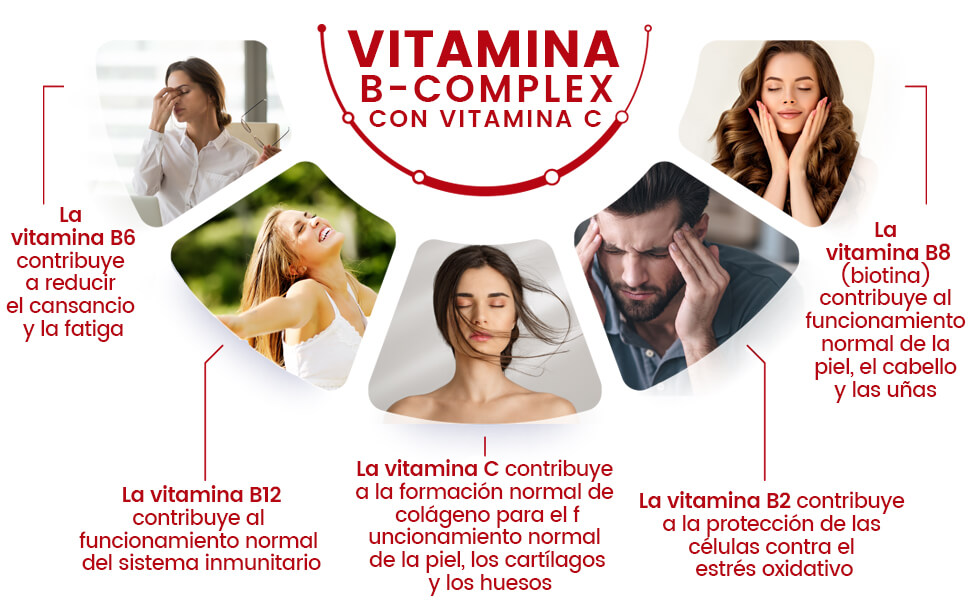 - Contiene las 8 vitaminas del grupo B y vitamina C para optimizar cada área de tu bienestar.