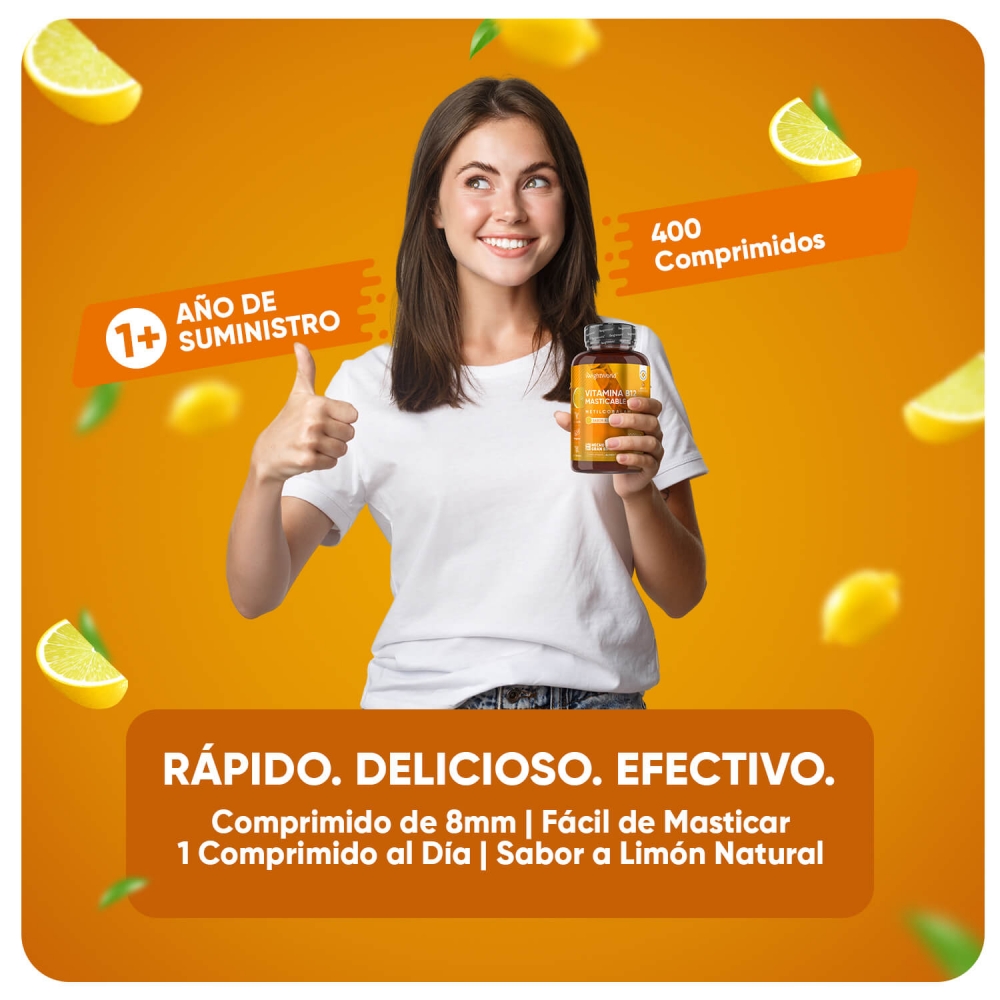 1000 mcg 400 Comprimidos Masticables | Suplemento Vegano para Energía y Sistema Inmune