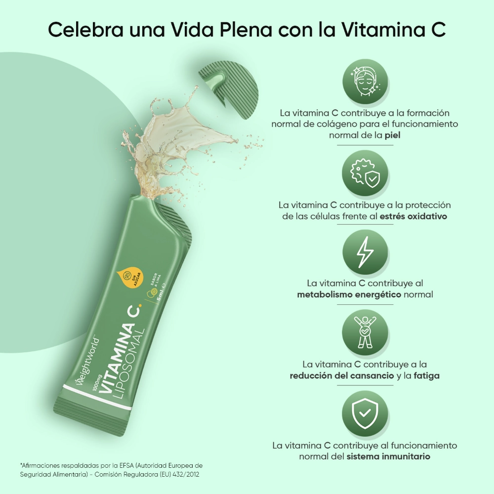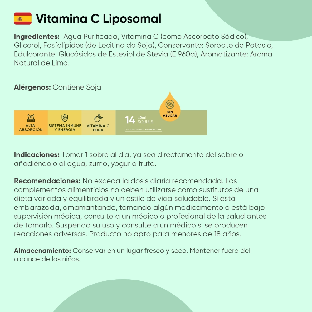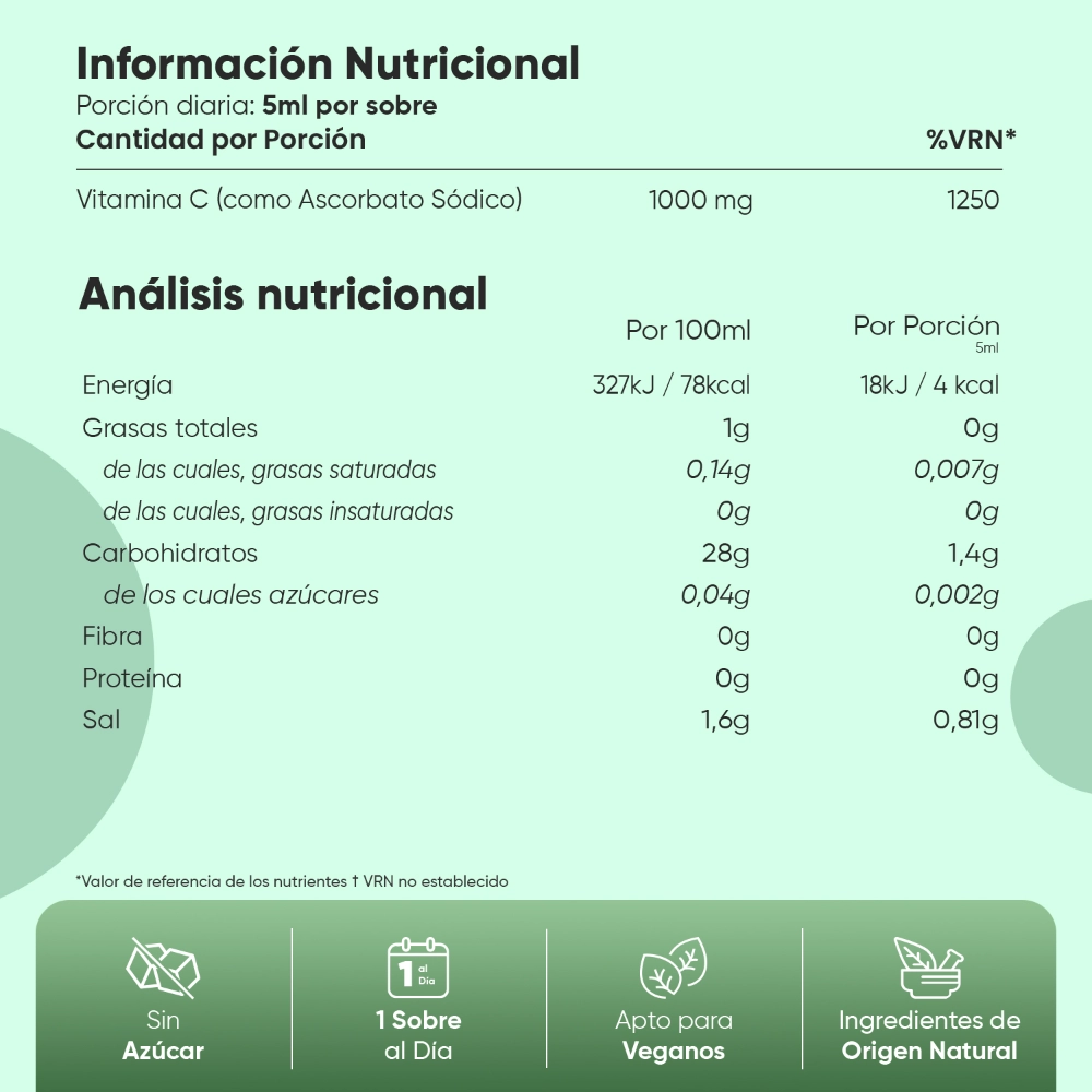 - Potente dosis de 1000 mg de vitamina C liposomal por sobre
