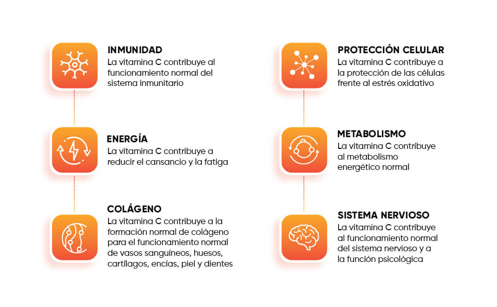 - La vitamina C contribuye a la reducción del cansancio y la fatiga