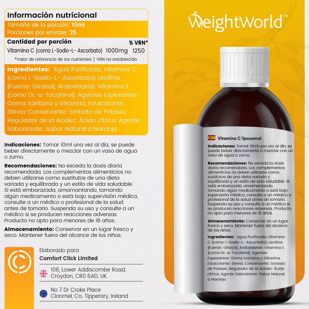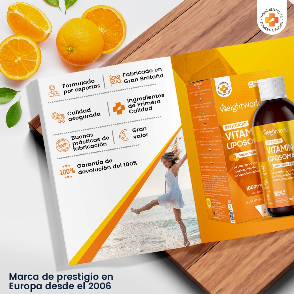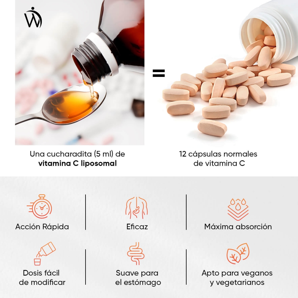 1000 mg 250 ml | Suplemento Sin Azúcar y Fácil de Tomar para Sistema Inmune y Energía