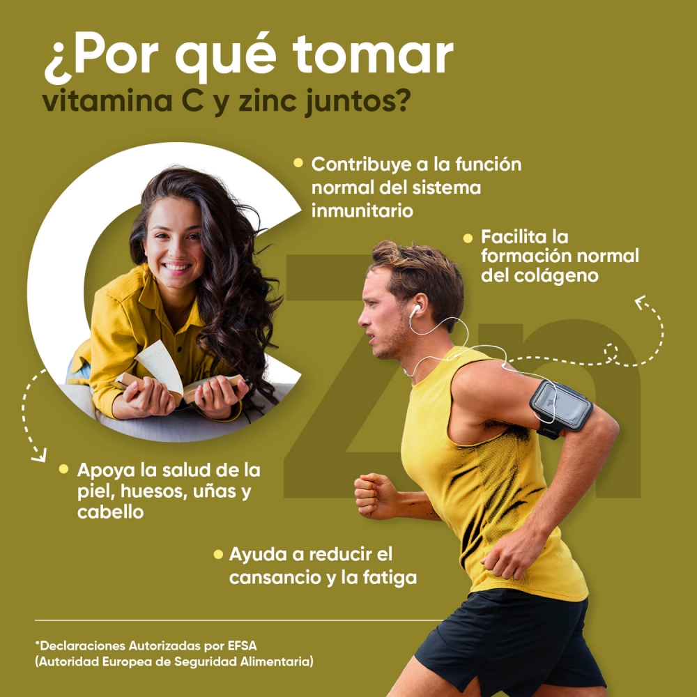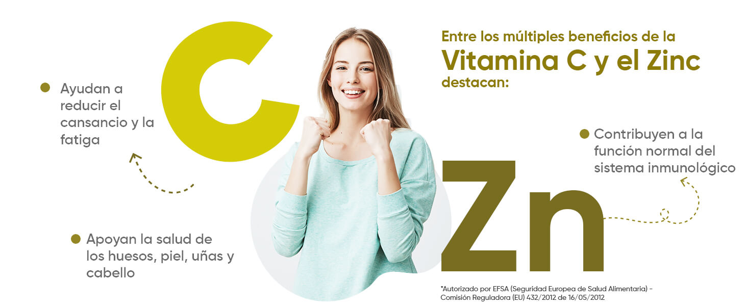 - Potente combo antioxidante: Vitamina C y Zinc.