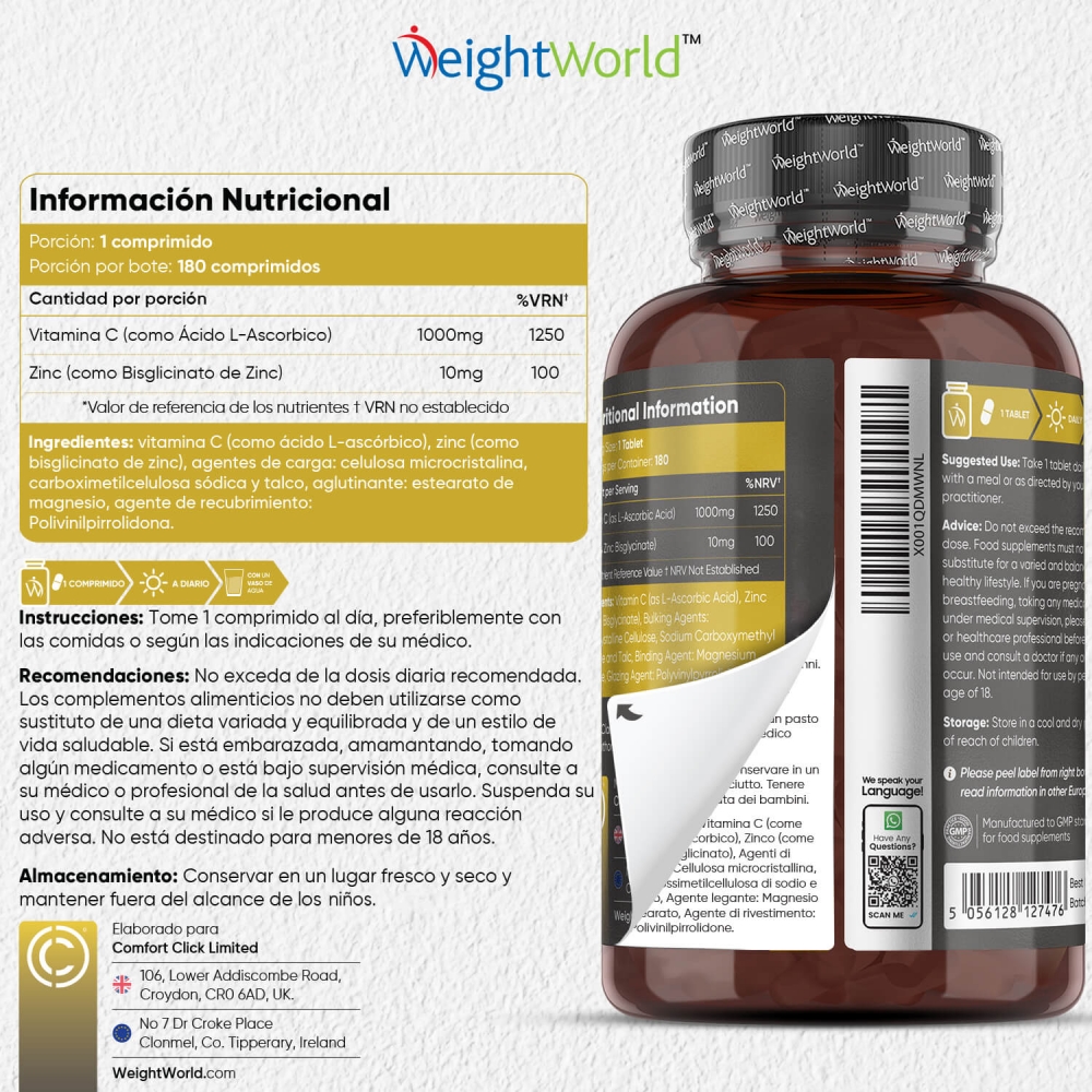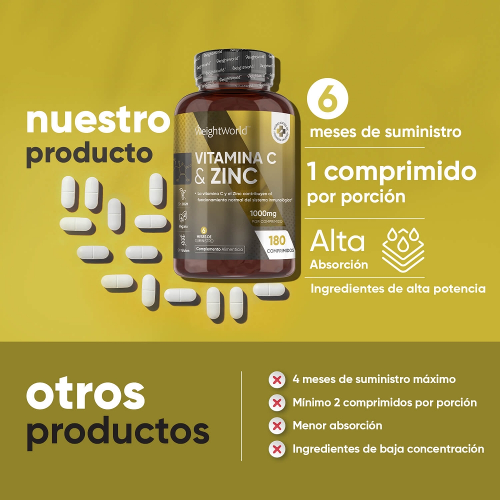 - Con 1000 mg de Vitamina C y 10 mg de Zinc