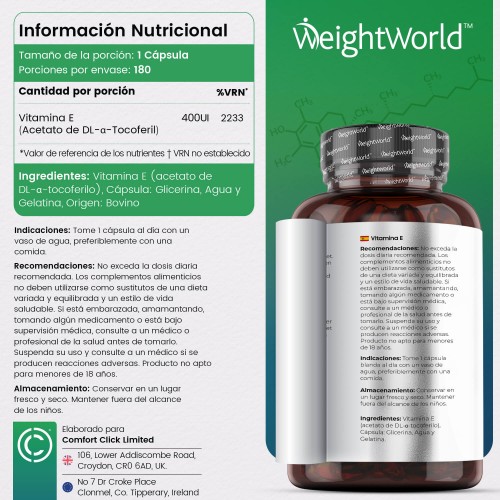 - Suplemento de Vitamina E de 400 UI (268 mg)
