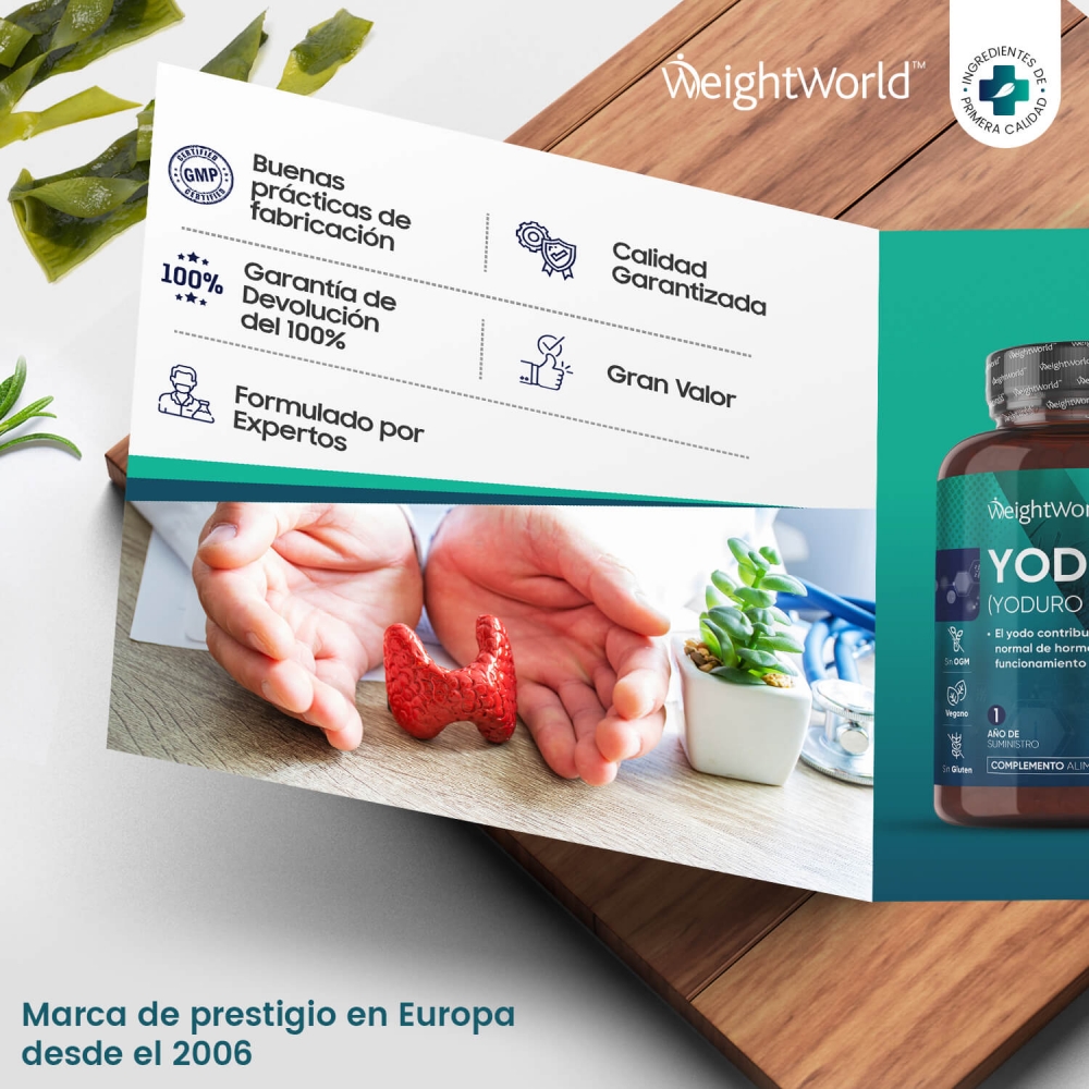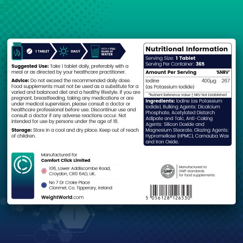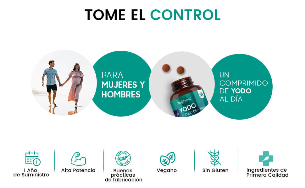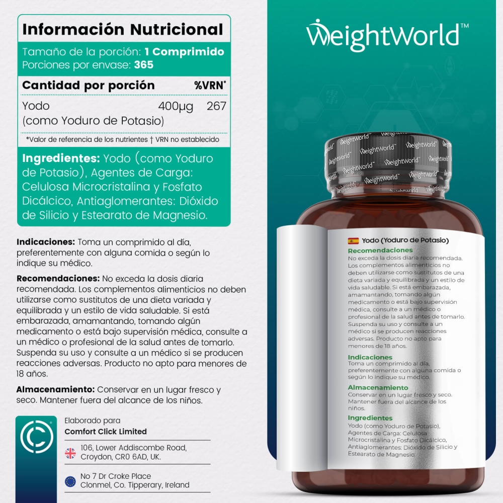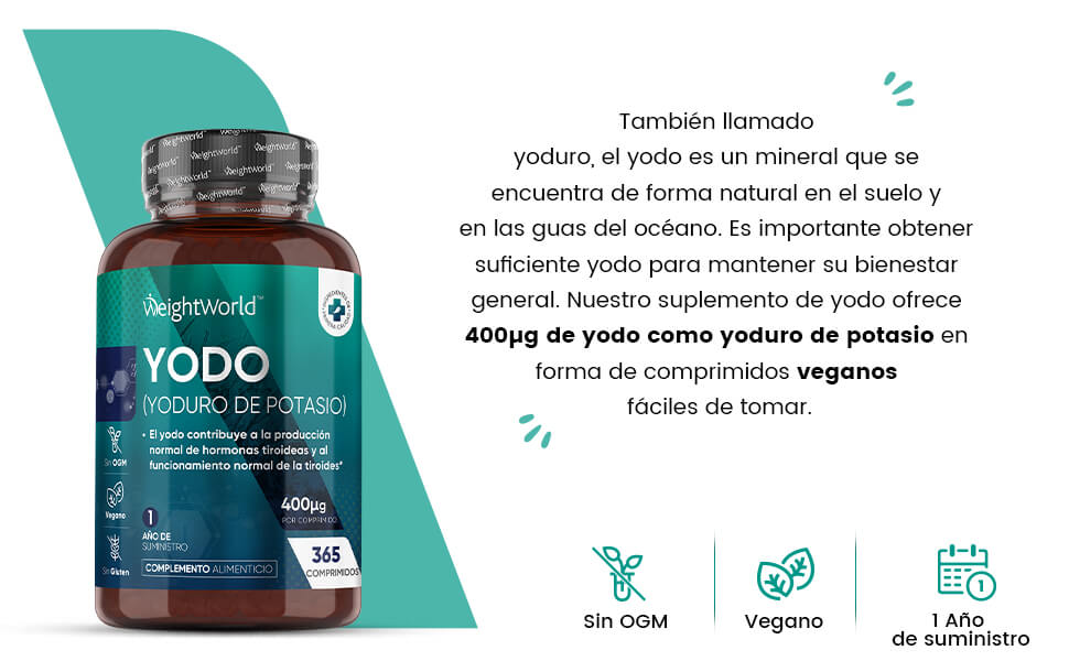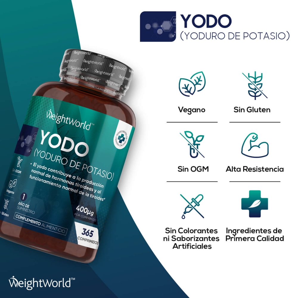 - Potente dosis de 400 mcg de Yoduro de Potasio por comprimido