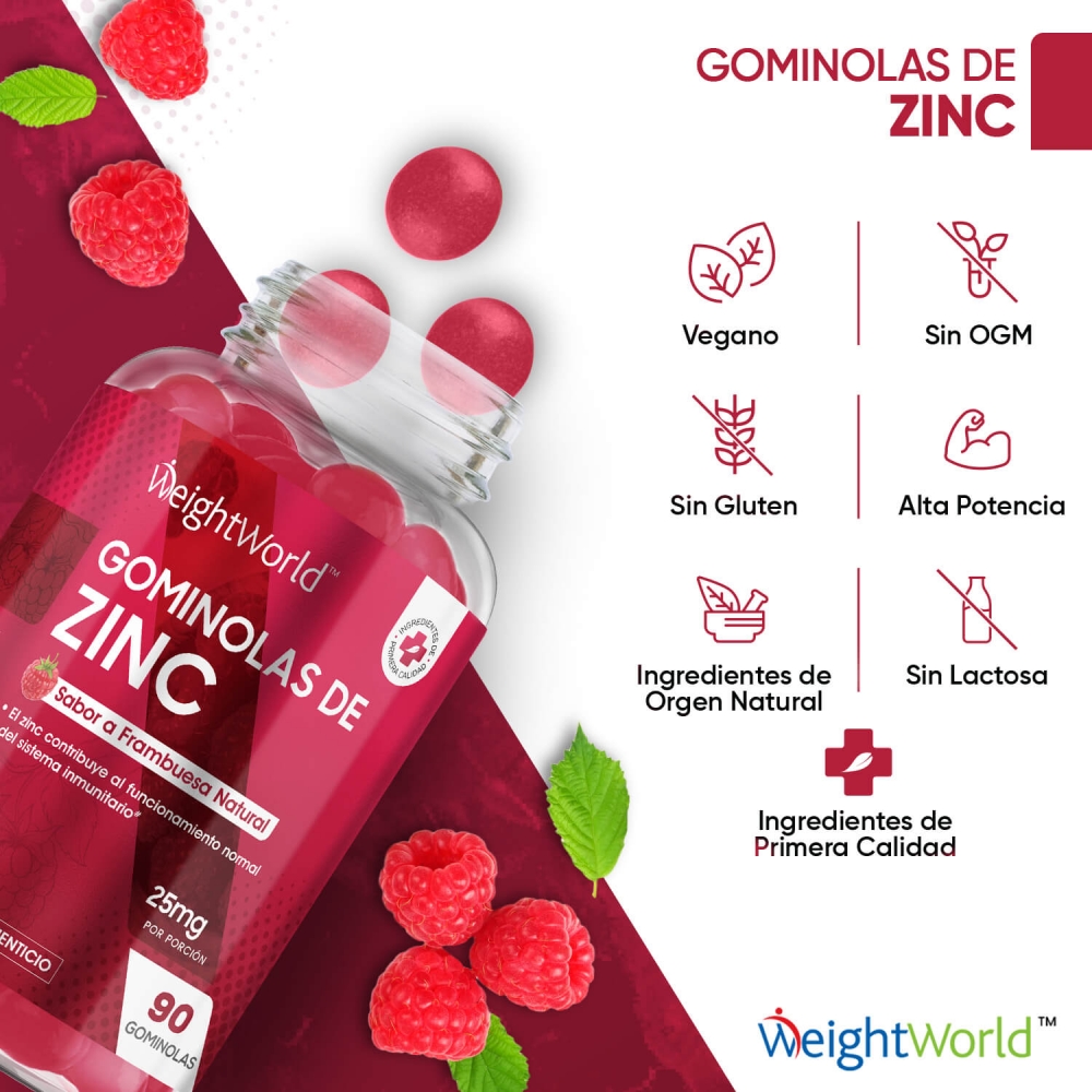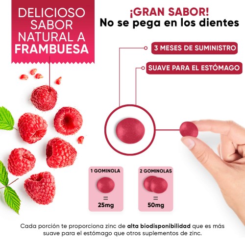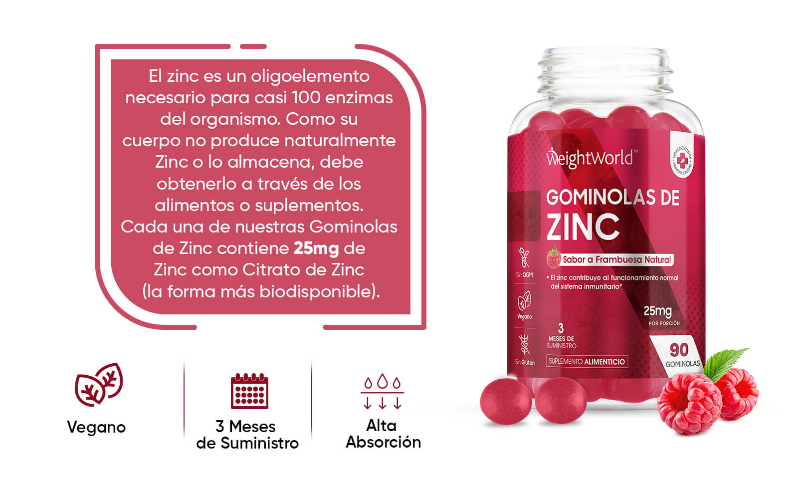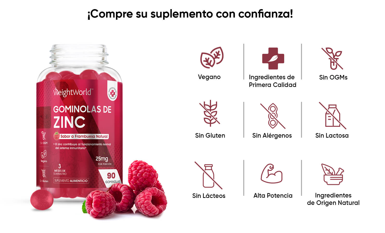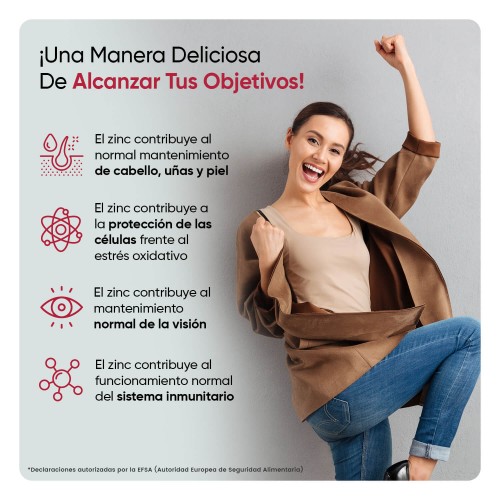 - Alta concentración de 25 mg* de Zinc (como citrato) en cada gominola