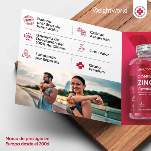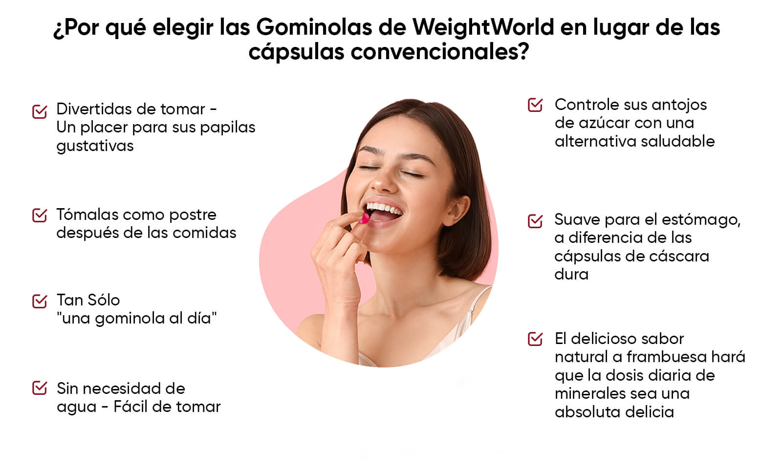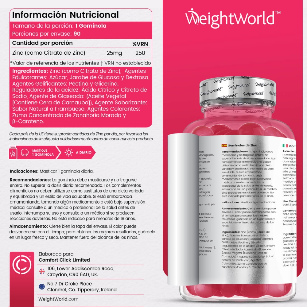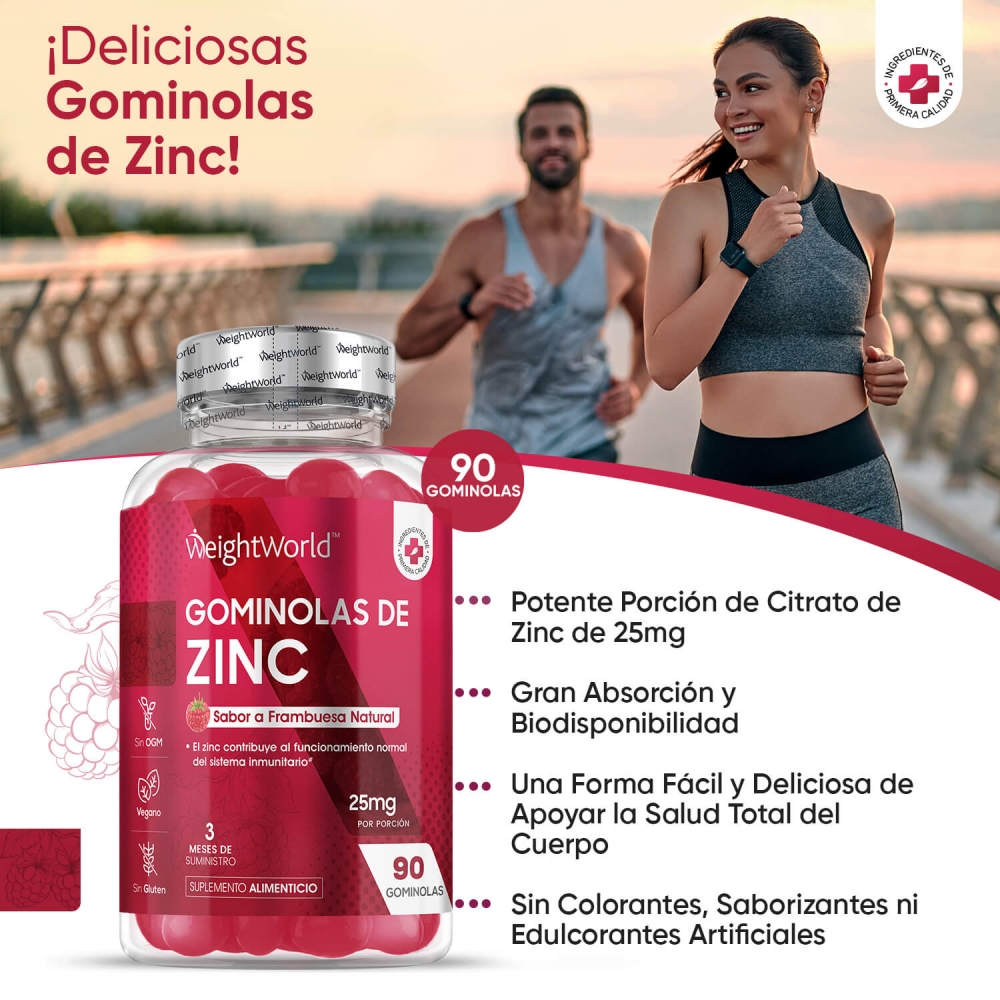 - Alta concentración de 25 mg* de Zinc (como citrato) en cada gominola
